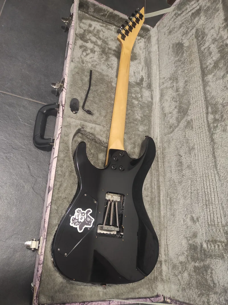 Japán gyártás, nyár végén volt hangszerésznél bundcsiszoláson, teljes beállítason.Szedők EMG 81-85re cserélve (az EMG 81 a 90es évek elejéről származik), felső satu és a tremoló karja ami még nem gyári. Éger test, juhar nyak, rózsafa fogólap. Tremoló jelenleg kiékelve, standard és drop hangolasban használtam, egyébként a tremolója kifejezetten jól működik.