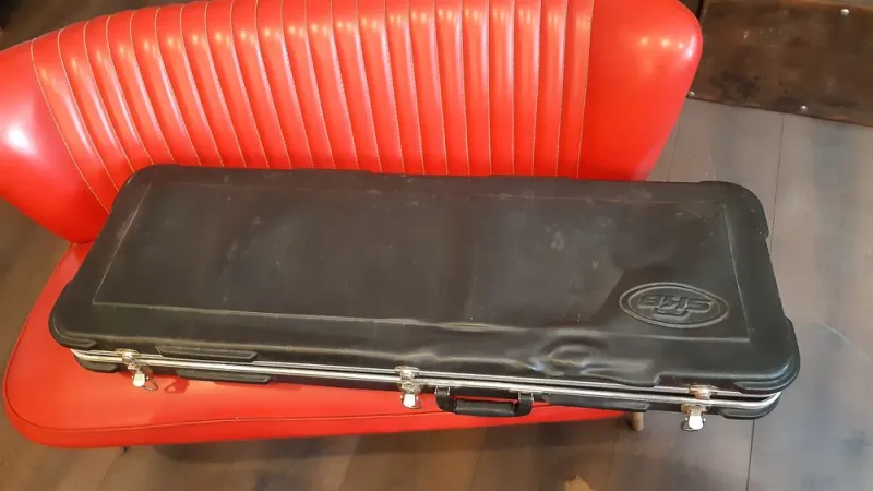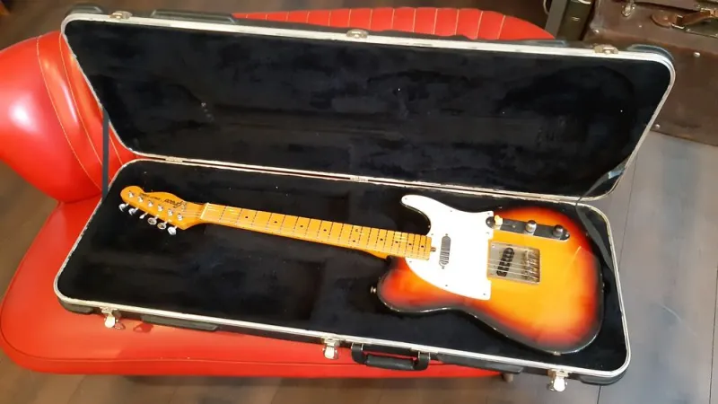 Greco Telecaster, vagyis Spacey Sound japánból, a `70-es évekből, a Matsumoku gyárból. Kőris test, jávor nyak. Frissen (nullkilométeres) bundozva, Medgyesi Tibor munkája. Vastag nyakú. Érdekesség (meglehet, csak számomra), hogy a Gibsonmenzúra méreteit utánozza, pontosan. A hangja irdatlan, jóval telecasterebb, fenderebb a mai Fendereknél. Igazán különleges, kiváló hangszer. De tényleg. És egy keménytok van vele.