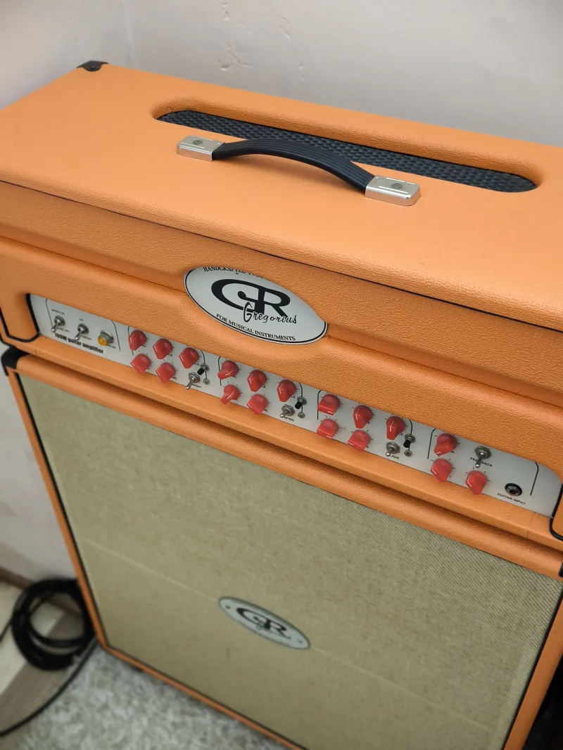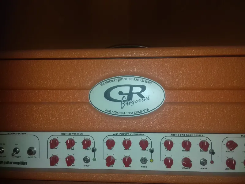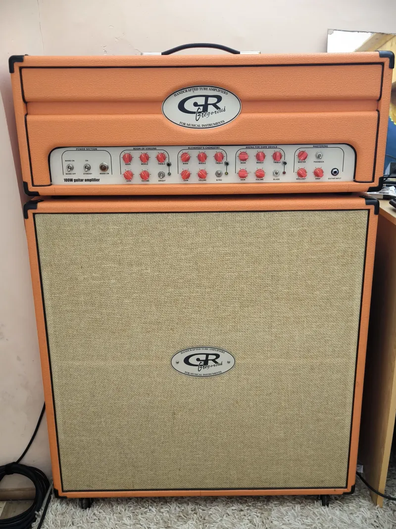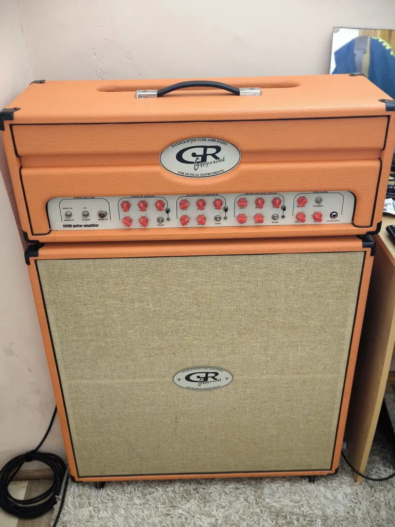 Eladó Gregorius (GREG) 100W 3 csatornás fullcsöves fej + láda - Egyedi, kézzel épített szett!Eladó egy igazi ritkaság, kizárólag egyetlen példány létezik belőle: Gregorius (GREG) 100 wattos, háromcsatornás, fullcsöves gitárerősítő fej és a hozzá készült láda, mindkettő Greg saját kézműves munkája!