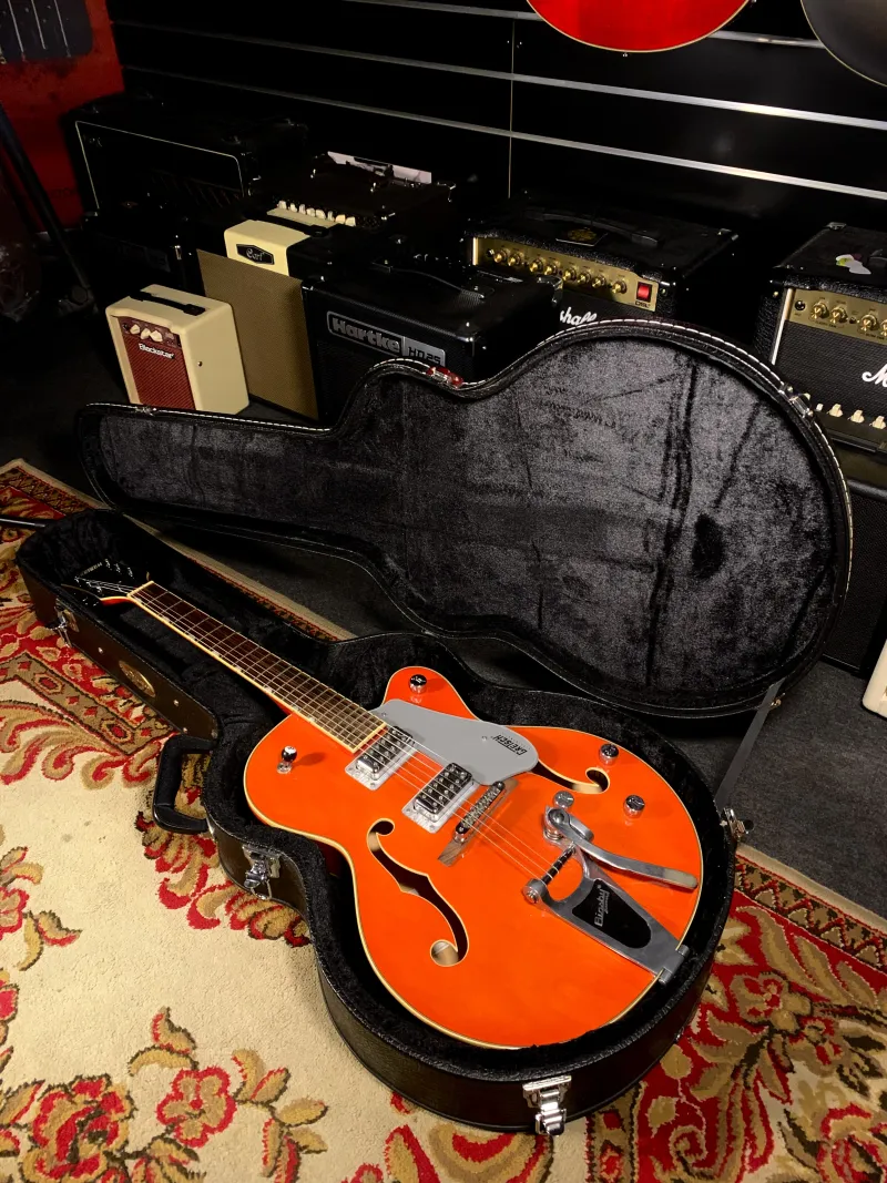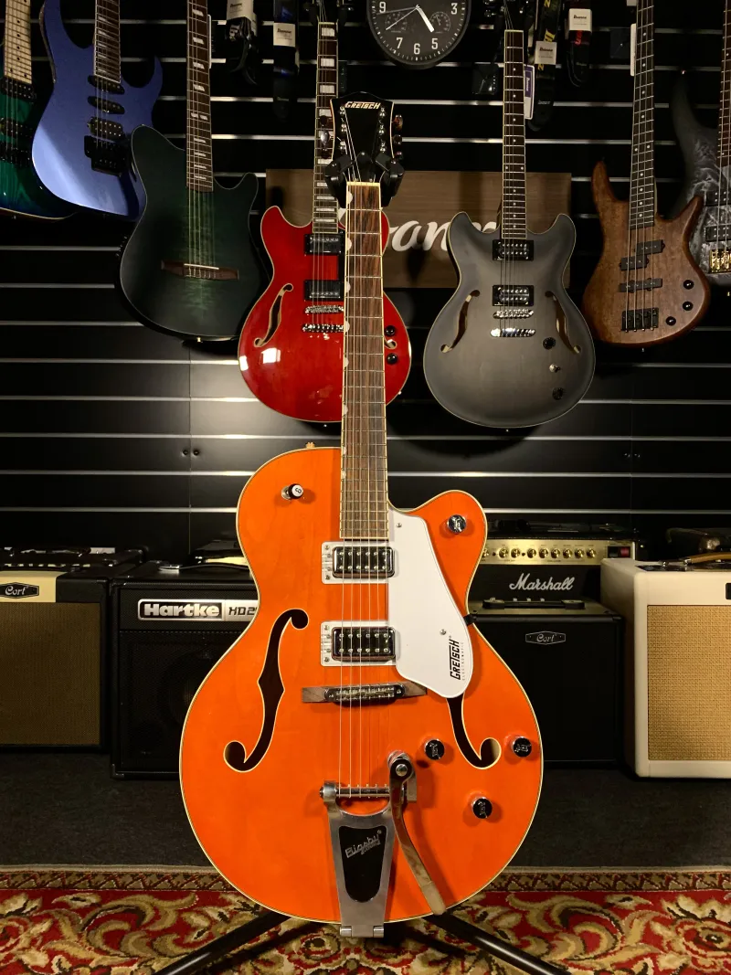 Eladásra kínálunk egy még Koreában készült Gretsch gitárt, egy hozzá passzoló Soundsation keménytokkal.juhar test, juhar nyak, rózsafa fogólap, menzúra: 24.5˝, 22 Medium Jumbo bundok, FT-5E Filter’Tron™ hangszedők, 3 állású pickup kapcsoló, 2 hangerő, master hangerő, master hangszín, krómozott szerelékek, rózsafa húrláb, nyílt mechanikás hangolókulcsok