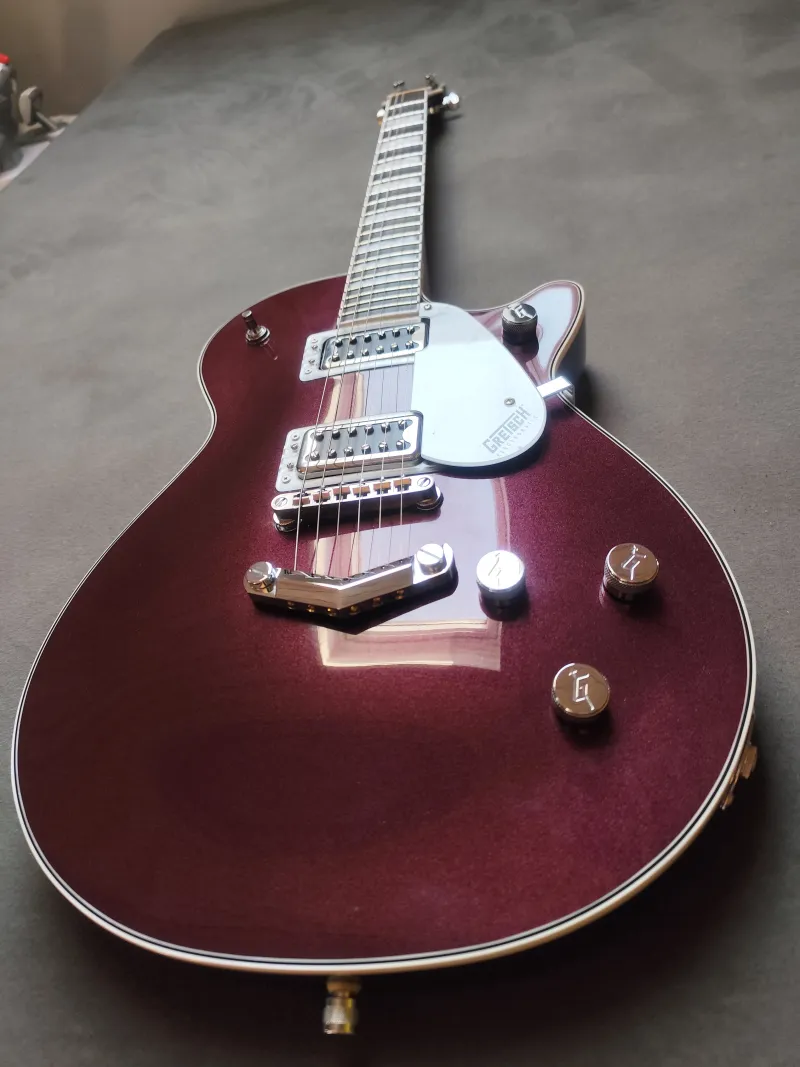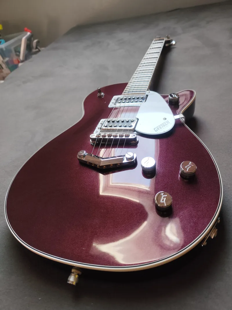 Eladó egy Gretsch G5220 elektromos gitár kitűnő állapotban!Gyönyörű Dark Cherry metálfényű lakkozás, krómozott hardverek és klasszikus Gretsch hangzás - meleg, telt, mégis harapós tónus.