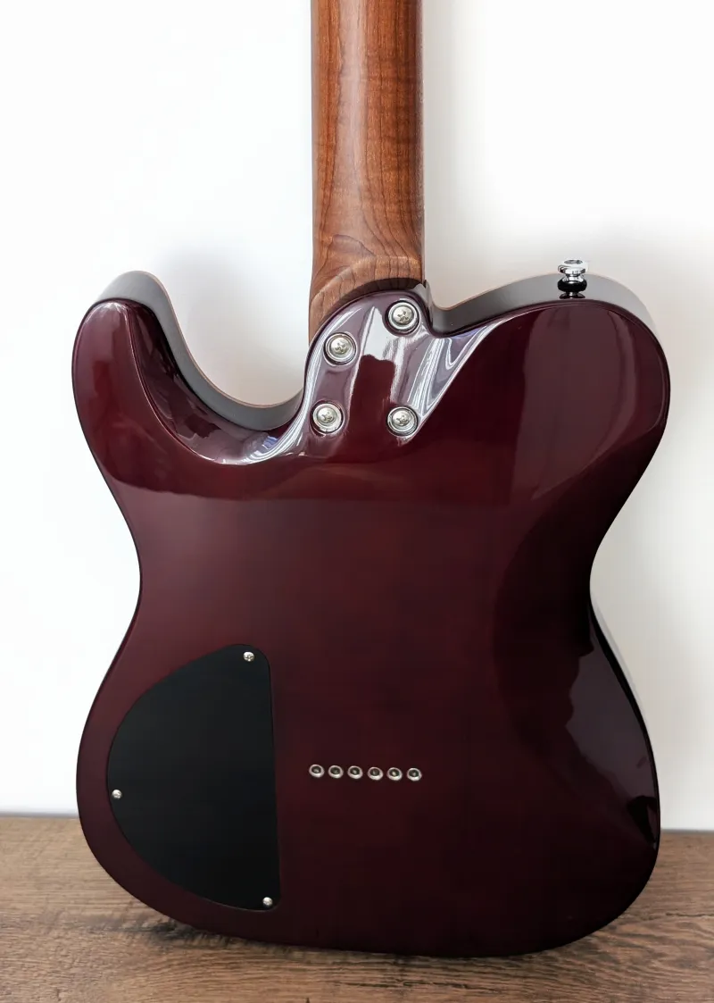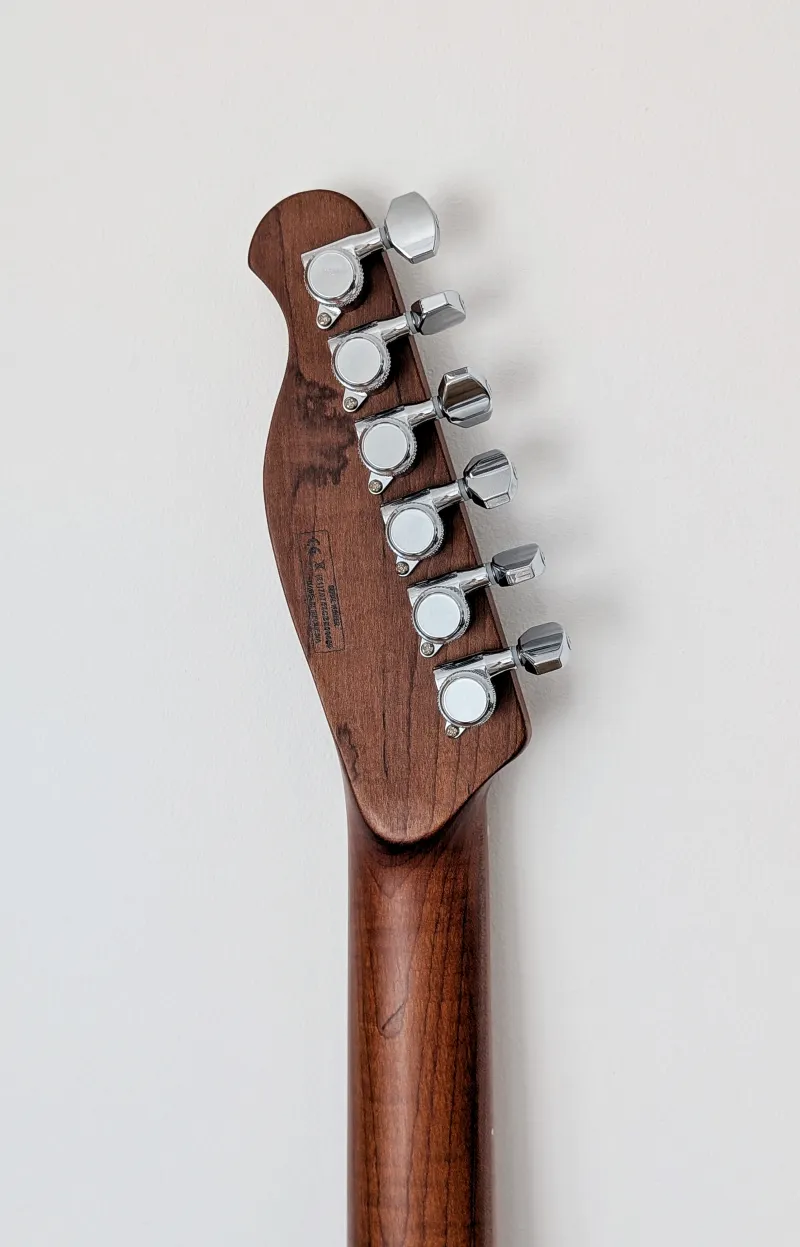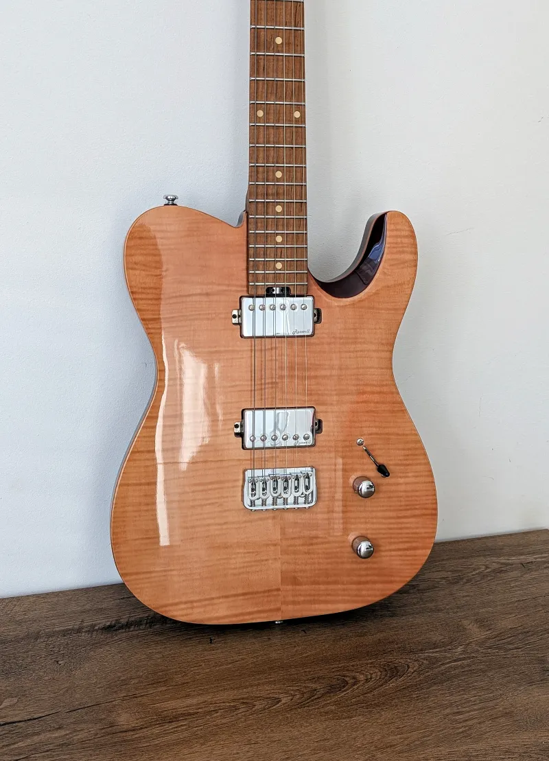 • Csavarozott, hőkezelt, kanadai lángolt juhar nyak, égetett juhar fogólappal