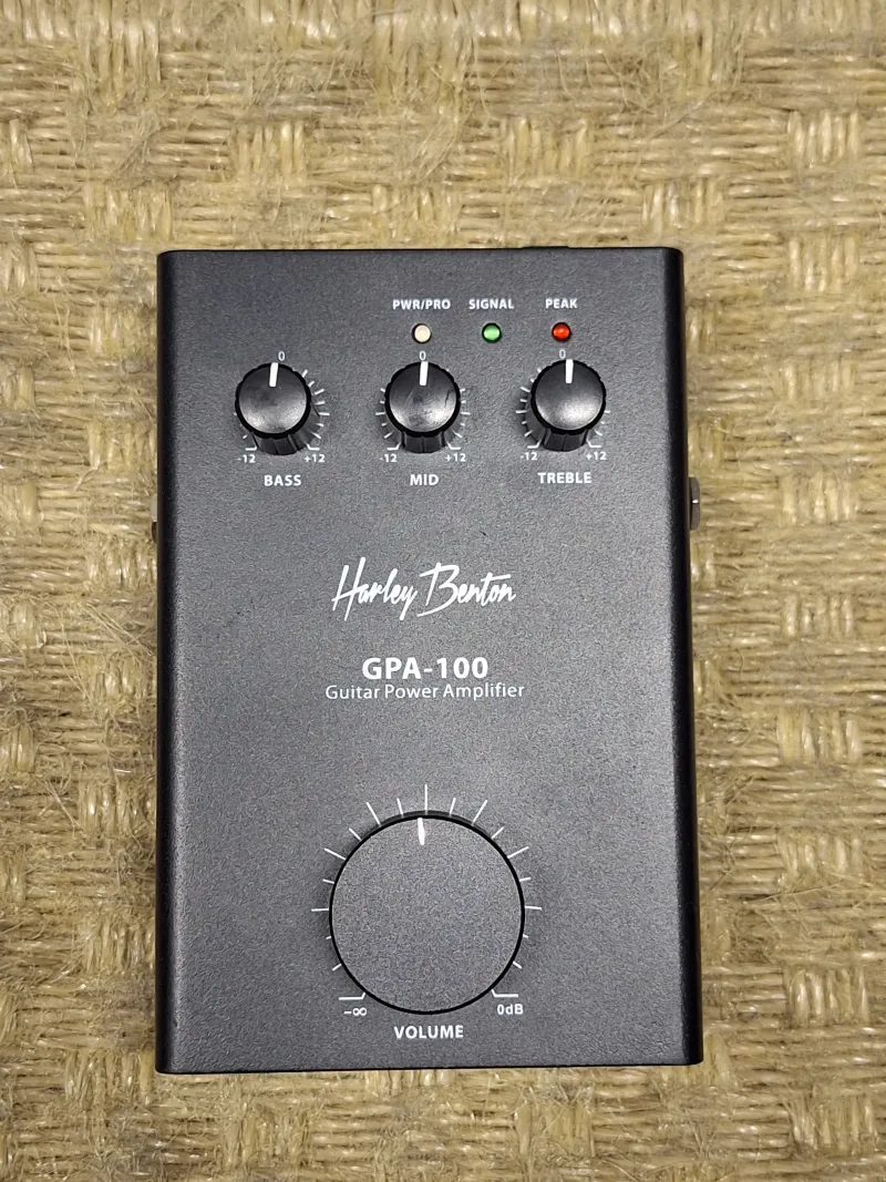 Harley Benton GPA-100 100 wattos végfok, doboza sajnos már nincs meg, tápkábellel együtt jár. 4x12es ládát szépen meg tud hajtani, dobos mellett is tud elég hangos lenni.