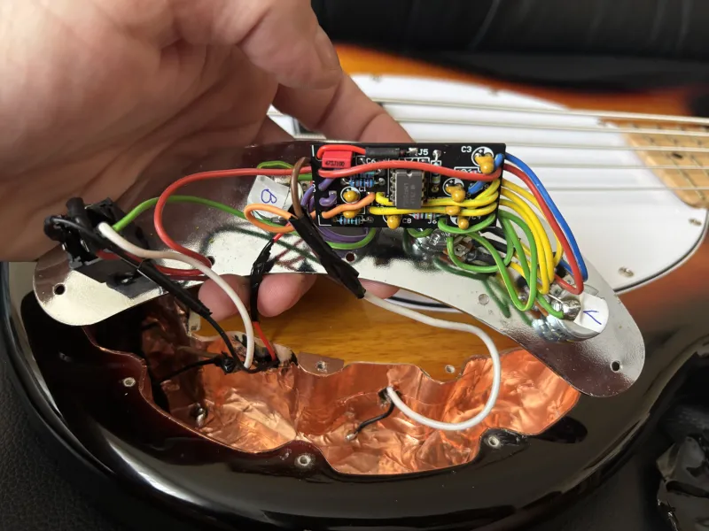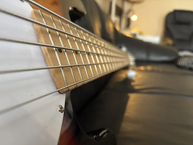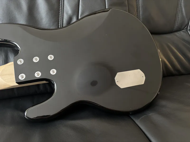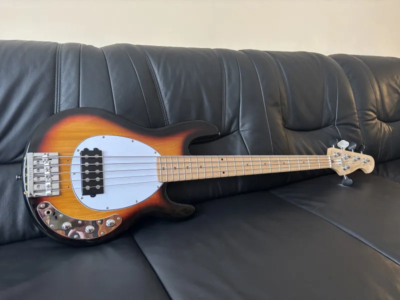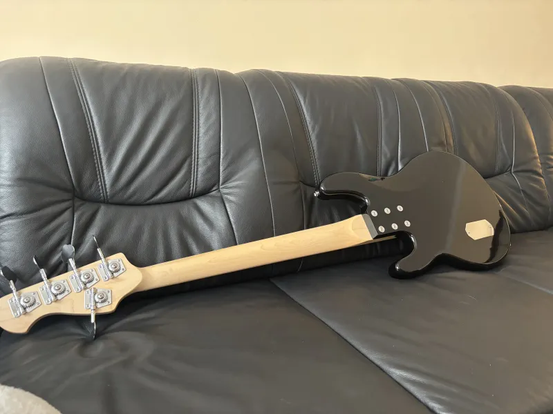 Eladó egy 2025 decemberében vásárolt, Harley Benton Music Man Stingray másolat. A hangszedő az eredetihez képest hátrébb került, pont oda ahol a Stingray Classic-on van. Mivel a nyak sokkal szélesebb, ezért az eredeti húrlábat (16mm-es húrköz), kicseréltem egy Fender HiMass 19-mm-esre, nem csuszik le G húr a fogólapról.Kapott egy Bosko preampot, (hangerő, magas, mély hangszin) ami a 70-es évekbeli MM pontos másolata. A hangszedő egy régi Mighty Mite, bitang nagy jellel. A nyaka egyenes, nagyon kenyelmes, bundok szelei nem lógnak ki, húrnyomása alacsony.
