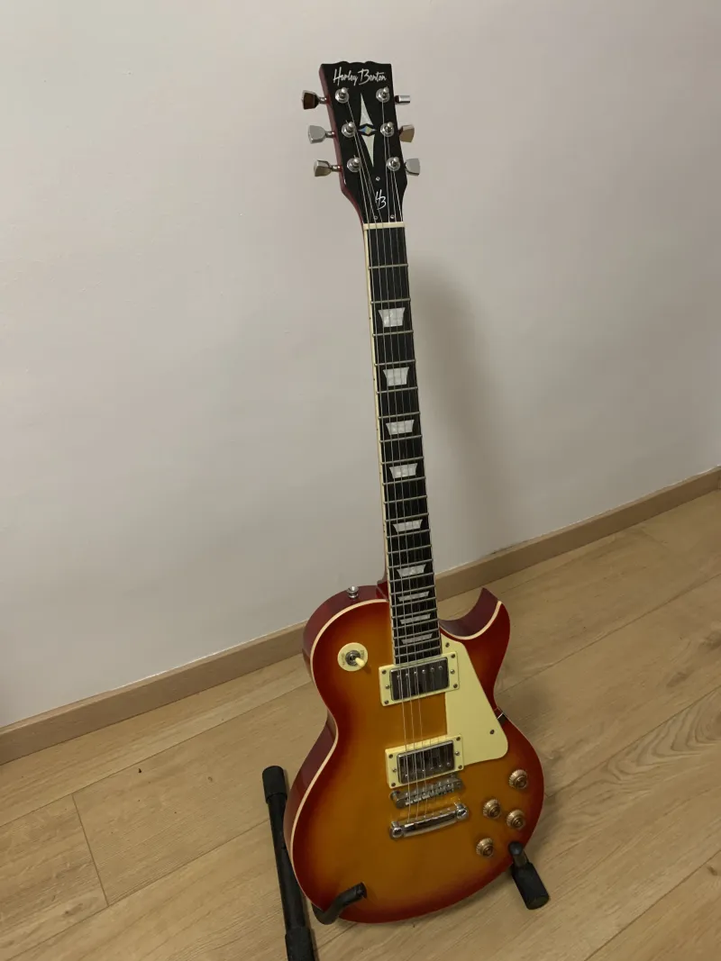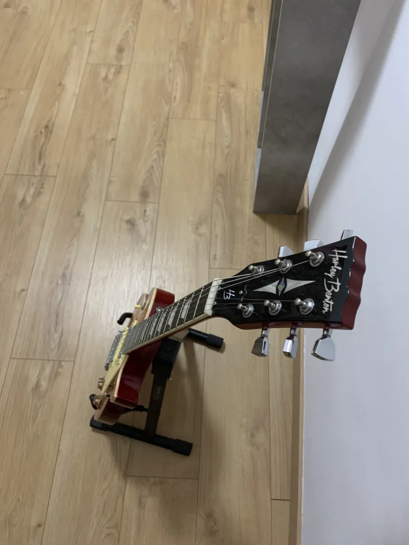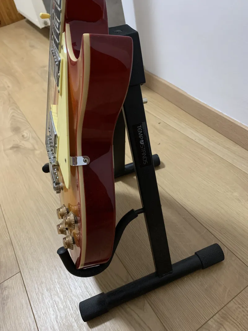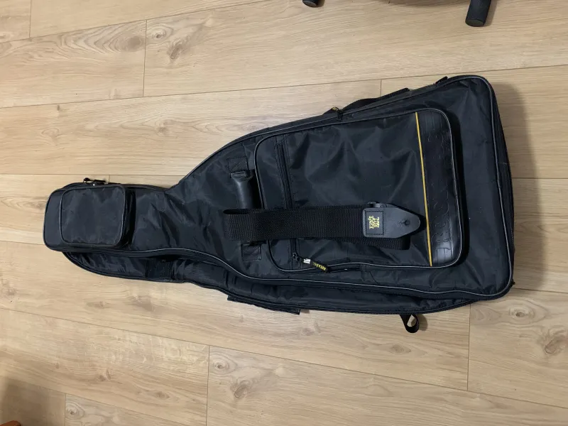 Eladó a képeken látható elektromos gitár. Beállított nyak, frissen síkolt bundok. Csontból készült nyerget, valamint egy új jack aljzatot kapott. A gyári hangszedőket nem cseréltem.A képen látható Rock Bag puhatokot és a gitárállványt is adom hozzá.