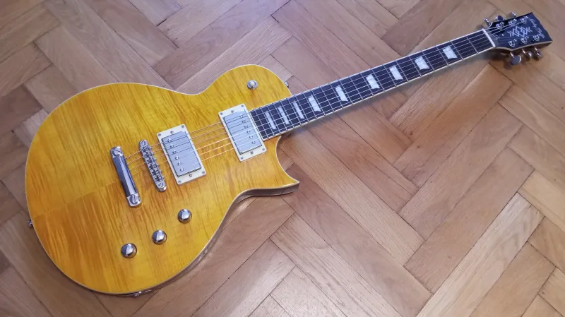 Eladó újszerű állapotú Harley Benton SC-Custom III Lemon Flame gitár!Meranti test és nyak, lángolt juhar furnér, rózsafa fogólap, rozsdamentes acél bundok, Tesla TM VR-Nitro Alnico-5 hangszedők, HB hangolókulcsok, straplock, Blacksmith 10-es bevonatos húrkészlet.