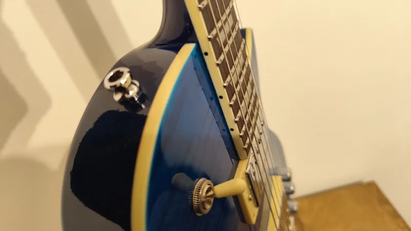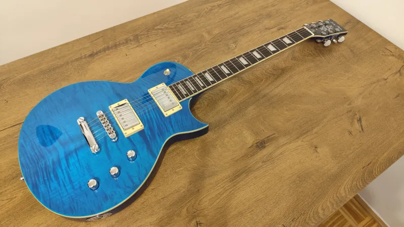 Sziasztok! Eladó a képeken látható gitár, kb. egy órát ha játszottam rajta, szóval lényegében új. Mondanám, hogy gyári állapotú, de ez így nem lenne teljesen igaz. A gyári állapothoz képest kapott egy beállítást, az éles bundvégeket szépen becsiszoltam, illetve az összes bund kapott egy polírozást, a fogólapot bekentem erre való ápoló löttyel, a potikat is beállítottam szépen a helyükre, mivel azok sem voltak tökéletesen pozícionálva. Szóval a hangszer gyakorlatilag hibátlan, az olcsóságából adódó kisebb gyári problémák orvosolva lettek. Még lakkhiba sincsen rajta, semmi. Nyíl egyenes nyak, (új Ernie Ball) húrok olyan alacsonyra engedve, amennyire nem szégyelltem (és még nincsen bund zörgés :) ). Az eladás oka az, hogy a gyári elektronika kissé gyenge, azt cserélném, ha megtartanám. De annyira meg mégsem tetszik, hogy költsek rá még egy halom pénzt, úgyhogy új, szerető gazdát keres ez a szépség, én meg maradok a jól bejáratott Telémnél. Az ára a jelenlegi új árához képest -10%, ami szerintem elfogadható úgy, hogy lényegében új és már semmit nem kell csinálni vele, csak használni.A gyári dobozán kívül más nem járt hozzá, úgyhogy én sem adok hozzá mást ezen kívül. Veszprémben előzetes egyeztetés után nagyjából bármikor megtekinthető, kipróbálható és elvihető. Postázás esetleg, de jobban örülnék ha eljönnél érte.