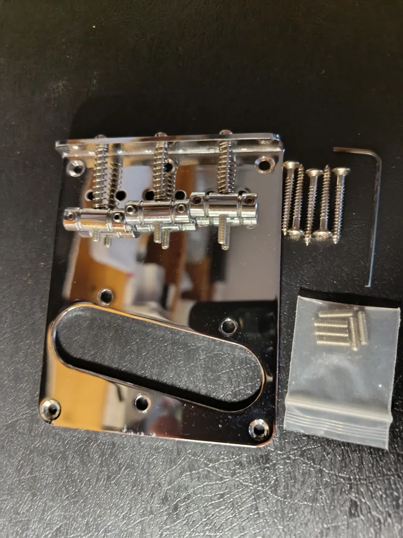 Eladó egy 3 babás HB tele híd.Projektgitárban volt, használt, de mindene rendben van. Rögzítő csavarjai, az állító imbuszkulcs, valamint a zacskóban lévő állító csavarok gyáriak, a benne lévők ennél rövidebbek (nekem kicsit kiálltak a gyári csavarok, beszereztem egy garniúra rövidebbet.)