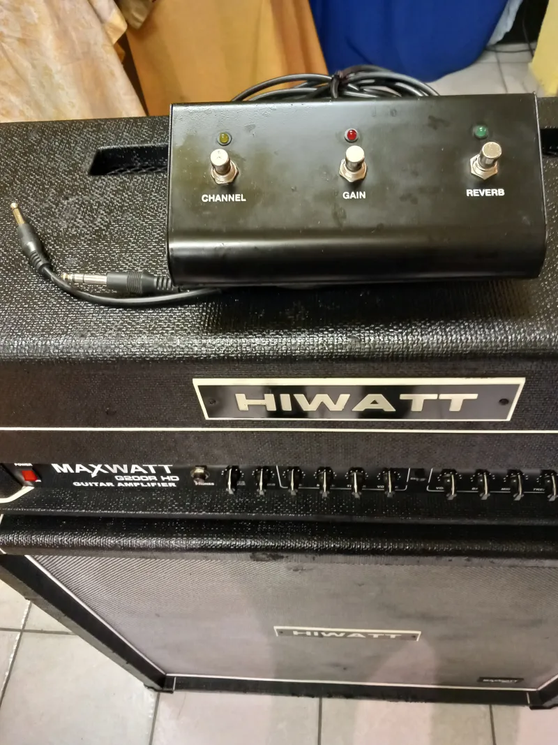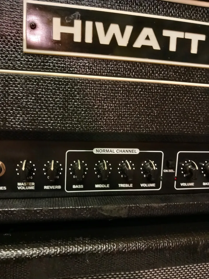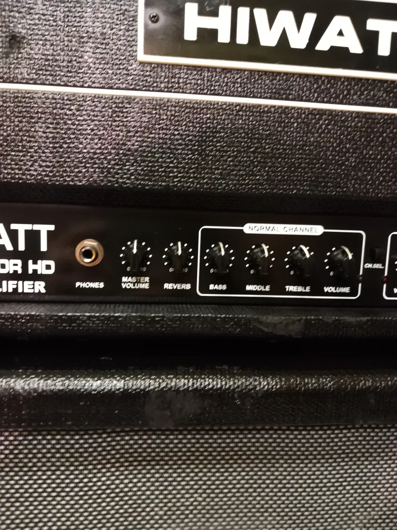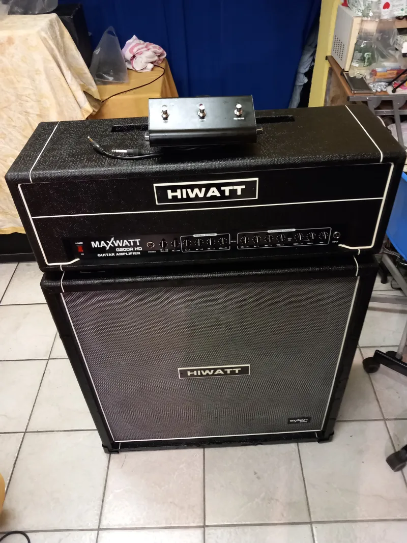 A képeken látható állapotban lévő gitár erősítő HIWATT 240.W/ 4.Ohm FS-3as lábkapcsolóval és 4x30.cm-es átmérőjű hangszóróval szerelt 400.W.4-16.Ohm monó állásban eladó.HIWATT MAXWATT G200R HD gitár erősítő fej: