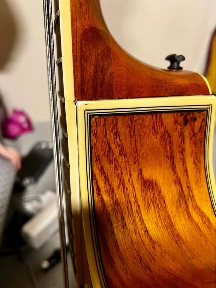 A top és a nyak csatlakozásánál elfáradt a ragasztás, van egy pár milis rés, de nem mozog.