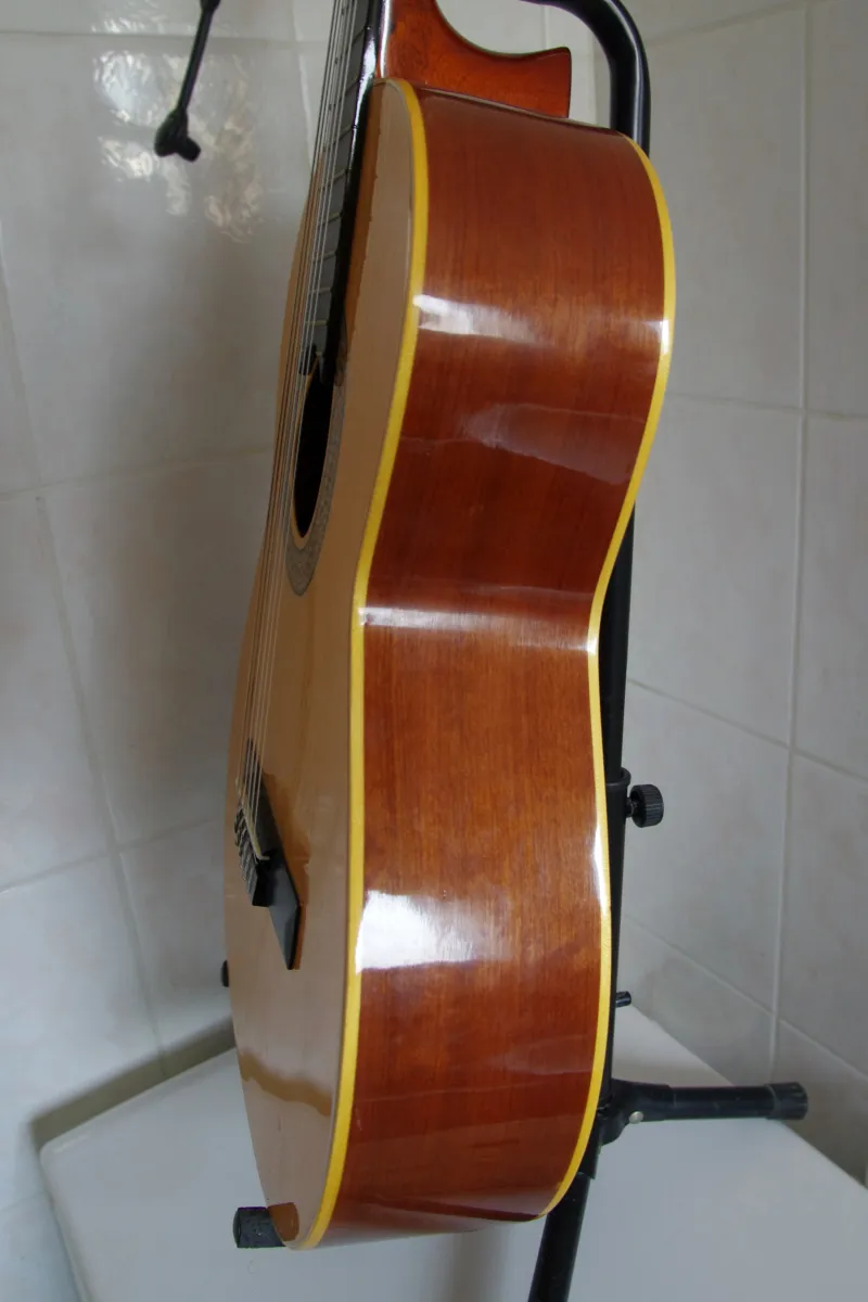 Nagyon szép, teljesen újszerű állapotban van, semmi karc vagy kopás. A bundok is új állapotúak. Gyönyörű, érett hangú hangszer.