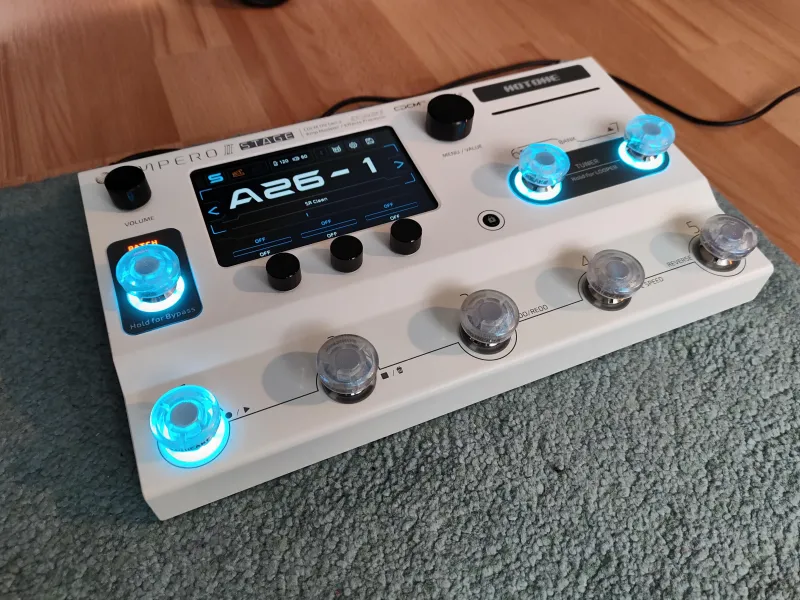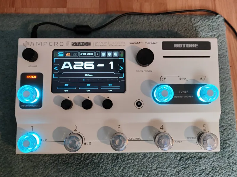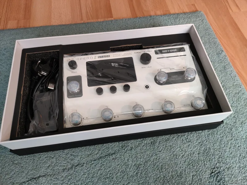 Nagyon szép állapotú multieffekt ajándék topperekkel! A legújabb, 1.5.1-es firmware van rajta, ezzel már mindent tud, ami egy modern multitól elvárható: wifis csatlakozás internetre, Hotone Cloudból letölthető presetek és amp clone-ok, tone capture, 2048 pontos IR kezelés, NAM modellek importálása. Amit a hardver tud: nagy érintőképernyő, élethű hangzás, sztereó XLR kimenet, dupla bemenet (gitár + ének), ground lift kapcsoló, két külső pedál vagy kapcsoló csatlakozási lehetősége stb. Van rajta néhány ingyenes és fizetős IR és amp model is pluszban. A kezelése is nagyon könnyű, pillanatok alatt használható hangzást lehet összerakni vele alapelemekből.A bolti ára 250 ezer forint, szóval ennnyiért szerintem nagyon jó vétel.