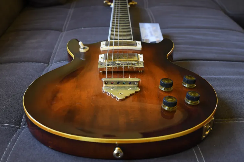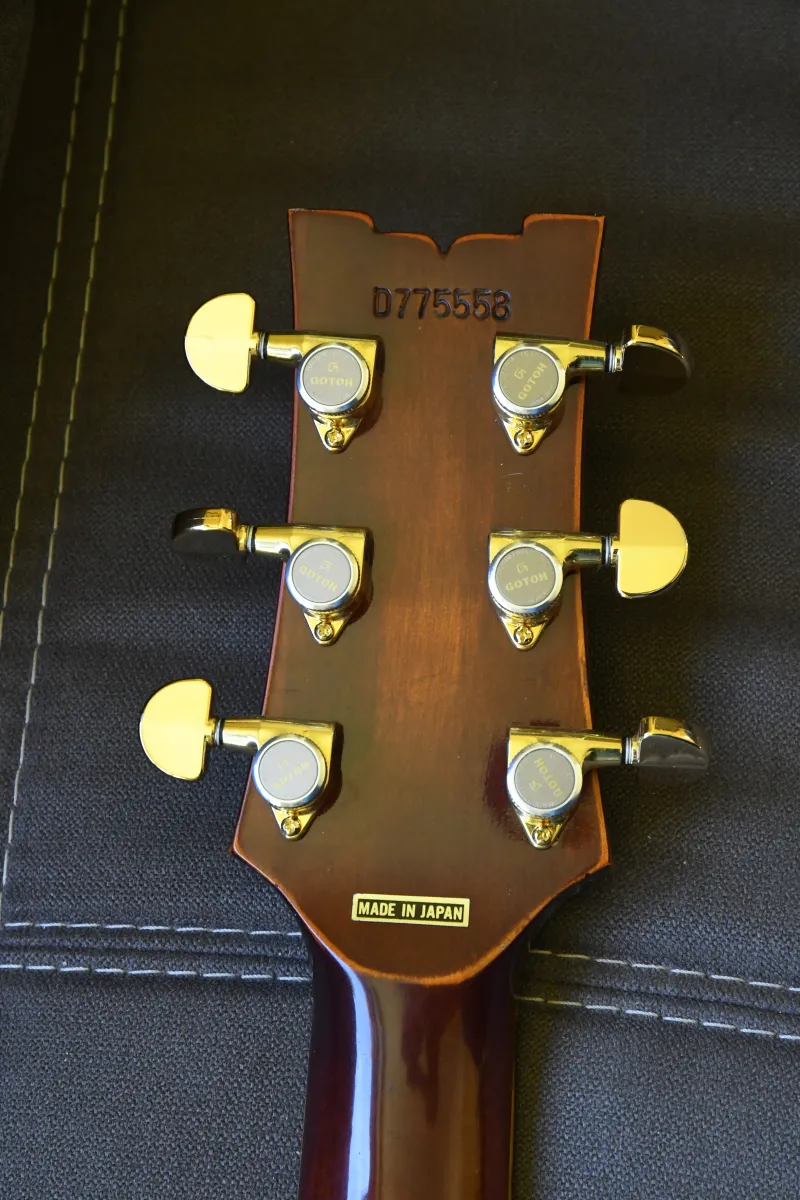 Hihetetlen szép állapotban megóvott hangszer, nagyon ritka (amit esetlegesen fel lehet lelni, szinte egytől egyig leharcolt állapotban és/vagy moddolva van, általában a binding szétrepedezett, de ezen nem).. Nem tudom létezik-e ehhez hasonlóan megőrzött darab bárhol. A gitáron minden eredeti, csak a kulcsok lettek cserélve Gotoh Japan satus kulcsokra, de az eredeti készletet is adom a gitárral. Nagyon jó nyaka van, bundok szuper állapotban, könnyen játszható, rezonáns hangszer, eszméletlen precíz Japán minőség.