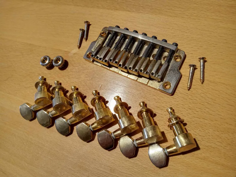 RGIX27FEQM-ből kiszedett Gibraltar Standard II-7 húrláb és hangolókulcsok. eladók egyben.