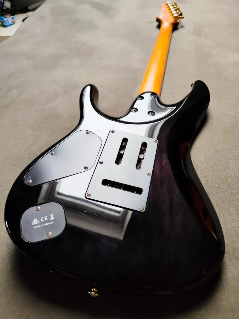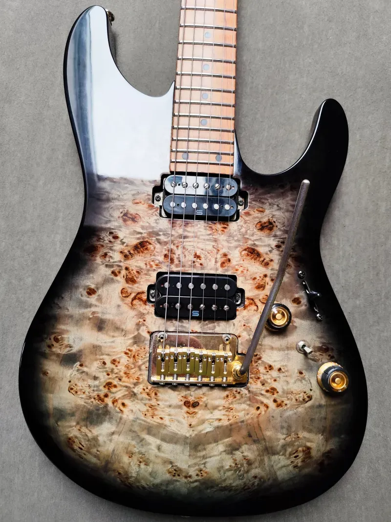 Eladó a képeken látható gitár nagyon jó állapotban. Csak 2020-21-ben gyártották, így nincs sok belőle.Amerikai hárs test nyárfa tetővel, pörkölt juhar nyak egy db-ból, 24 jumbo rozsdamentes acél bundok, Gotoh T1502 tremolo görgős babákkal, Gotoh SG381 MG-T satus kulcsok, Seymour Duncan Hyperion Alnico szedők, dyna-MIX10 kapcsolórendszer ˝Alter kapcsolóval˝.