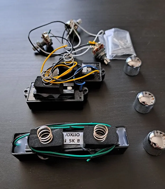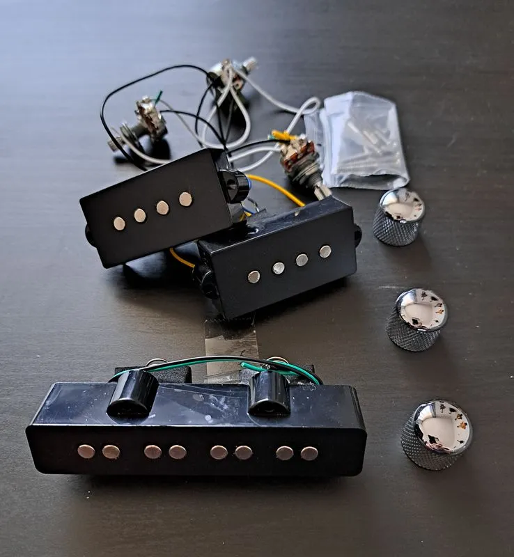 Eladó Ibanez Dynamix PJ Precision és Jazz Bass pickup szett potikkal,fém potisapkákkal, és jack aljzattal együtt.
