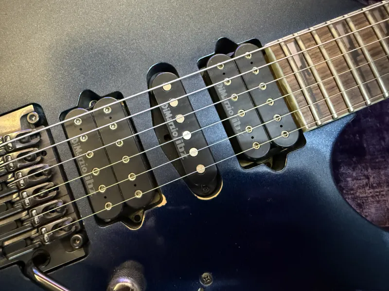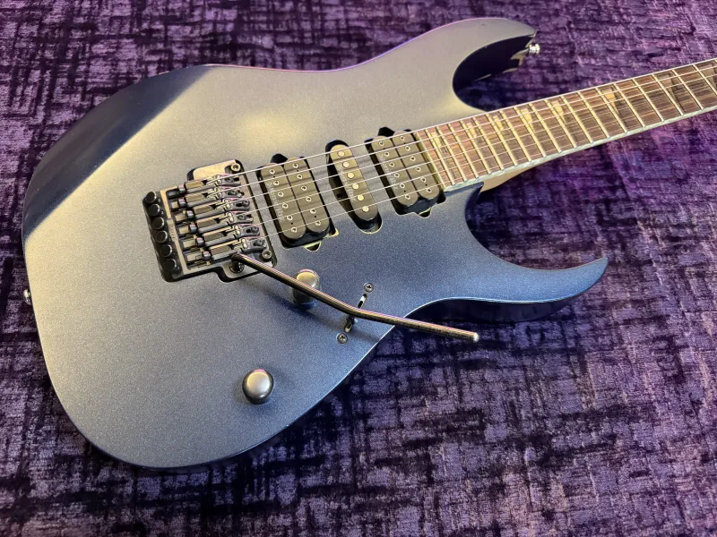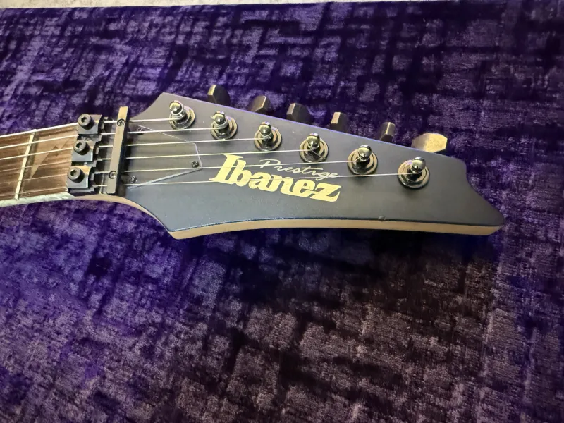 Beszámításból hozzám került 2003-as japán Prestige Ibanez RG2570, tok nélkül.Hársfa test, jávor nyak, rózsafa fogó, 24 jumbo bund, Edge Pro trem, DiMarzio/Ibz pickupok (HSH).