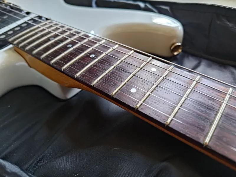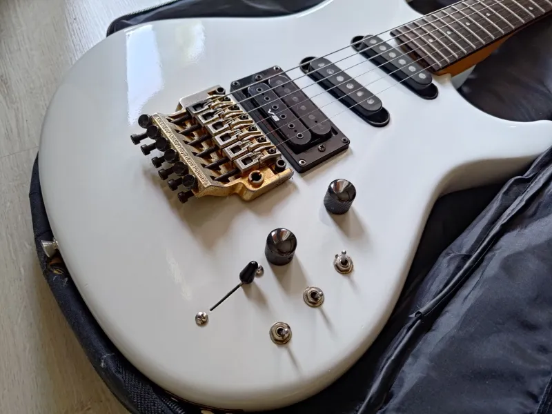 Fehérre festettem a gitárt és egy kicsit módosítottam az elektronikát. Utóbbin még lehetne tovább javítani: az 5 állású kapcsoló a megszokott állásokat kapcsolja csak. Az egyik kétállású kapcsolóval a két single-coil hangszedőt lehet sorba vagy párhuzamosan kötni. A másik kétállású kapcsolóval a humbuckert lehet felezni, a harmadik kapcsoló jelenleg nincs bekötve.