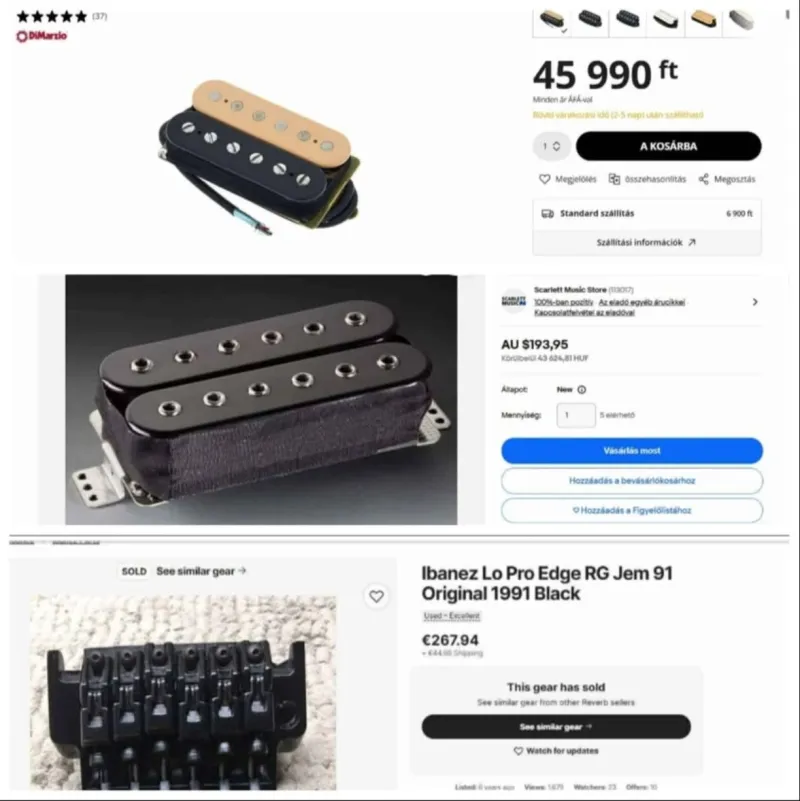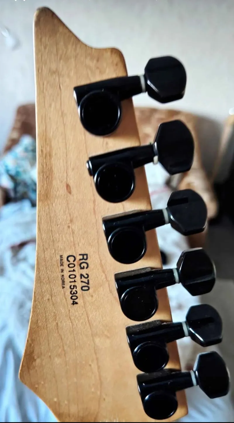Egy korai Rg 270- es, ( koreai), eladó sorba került. A gitár bitangul fel lett turbózva. Kapott egy Dimarzio Air Norton- t a nyakhoz, egy 90- es évekbeli Schallert a hídhoz, ( az amerikai Kramerekben volt ilyen, ma már ritka ,mint a fehér holló, és elképesztő, amit szól), valamint egy Lo Pro Edge teljes tremoló rendszert. Természetesen a kar megvan hozzá, ráadásul a könnyített carbon kar, amivel sokkal könnyebb és kényelmesebb tremolózni. Csak ez a kar 38 ezer a Thomannon. Ezenkívül kapott egy teljes beállítást hangszerésznél, új Elixir 9-42- es húrokkal vihető. Szóval csak a tuningolt dolgok jóval többe kerülnek, mint amennyi a gitár ára...A hangszer szép állapotban van, egy kisebb lakkleverődés van rajta, nem feltűnő helyen.