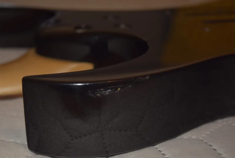 A fényezés néhány helyen sérült, próbáltam fotózni (nyak pu felett, alsó szarv alján, alsó élen az aljzatnál), a középső pickup füleknek 1-1 kisebb gödör a fában (a koptató alatt). Saját tokja nincs, posta esetén felárért szerzek egyet.