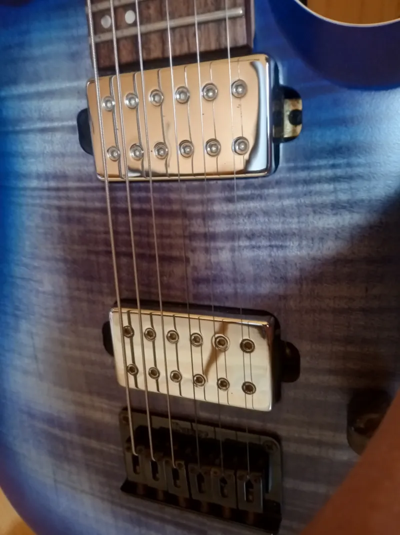 - A kupakok forrasztva vannak, a bridge hangszedő ezen túl a kimeneti jel erőssége miatt viasz töltést is kapott. A megszokott Ibanez ötállású kapcsolástól annyiban tér el, hogy nem egy, hanem két különböző osztott állása van. A szokványos belső magos felezésen kívül tud egy olyan konfigurációt is, ami a nyakhoz közelebb eső magot használja a nyaki hangszedőből.