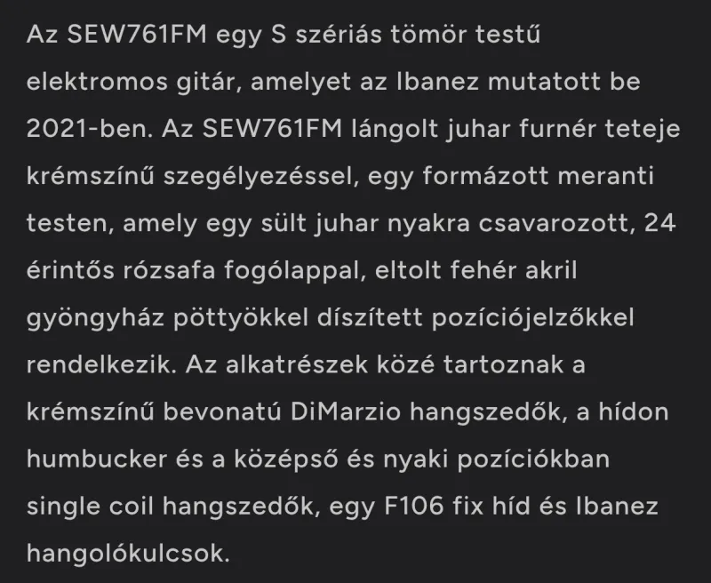 Ibanez S sorozat SEW761FM-NTF elektromos gitár