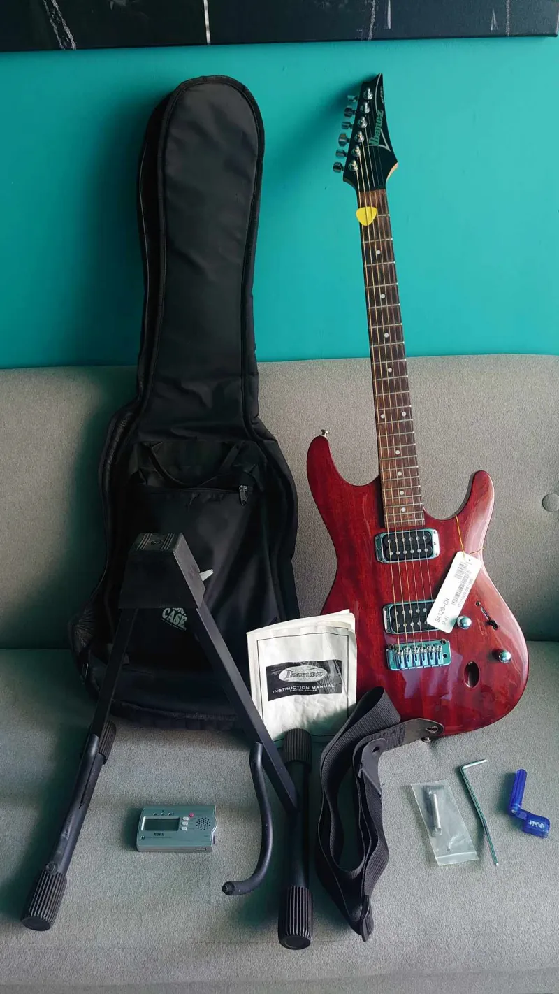 Gitár remek állapotban van, karcmentes! Nagyon kényelmes a nyaka, kezdőknek tökéletes! A tok kicsit viseltes, de remekül használható, egy tisztítás ráfér.Kiegek: húrtekerő, állvány, pánt, korg ga-30 hangológép, húrtisztító, 3m jack kábel, leírás
