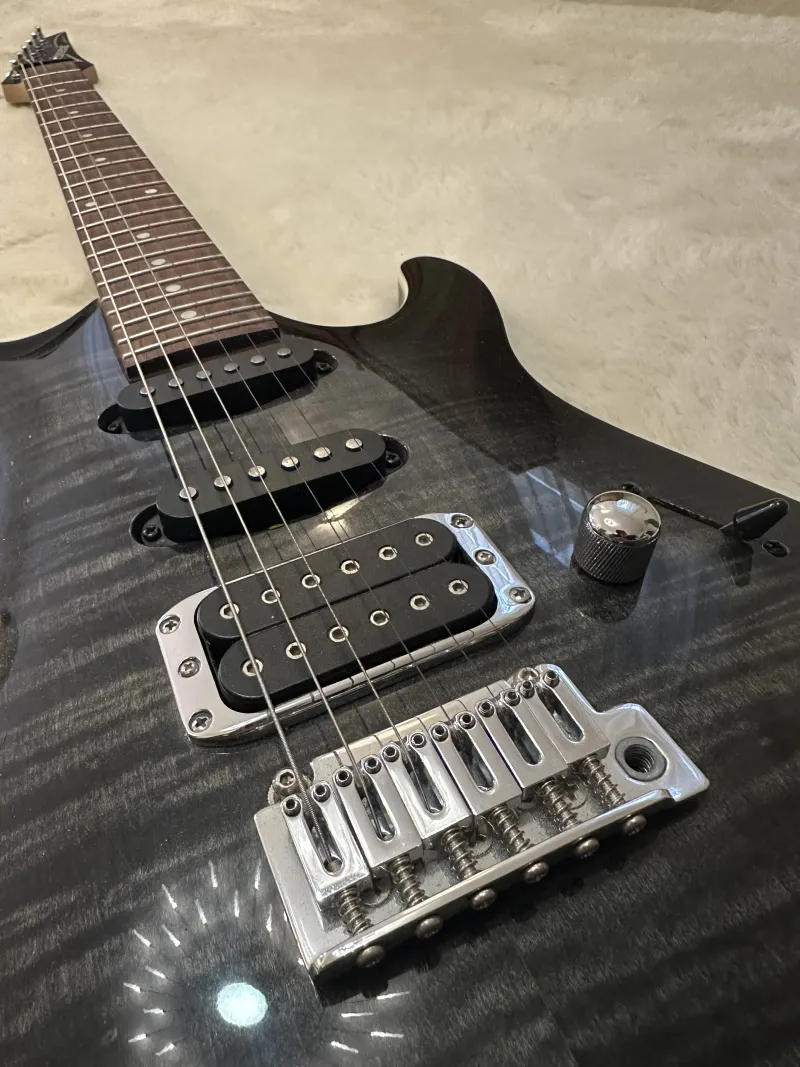 Teljesen karcmentes, a hátlapi műanyag fedlapokon még a gyári védőfólia is rajta van! Lángolt juhar (FM) fedlap, Transparent Gray Burst színben, elegáns szegéllyel. Nagyon sokoldalú HSS kiosztás, a tiszta bluestól a dögös rockig mindenre jó.