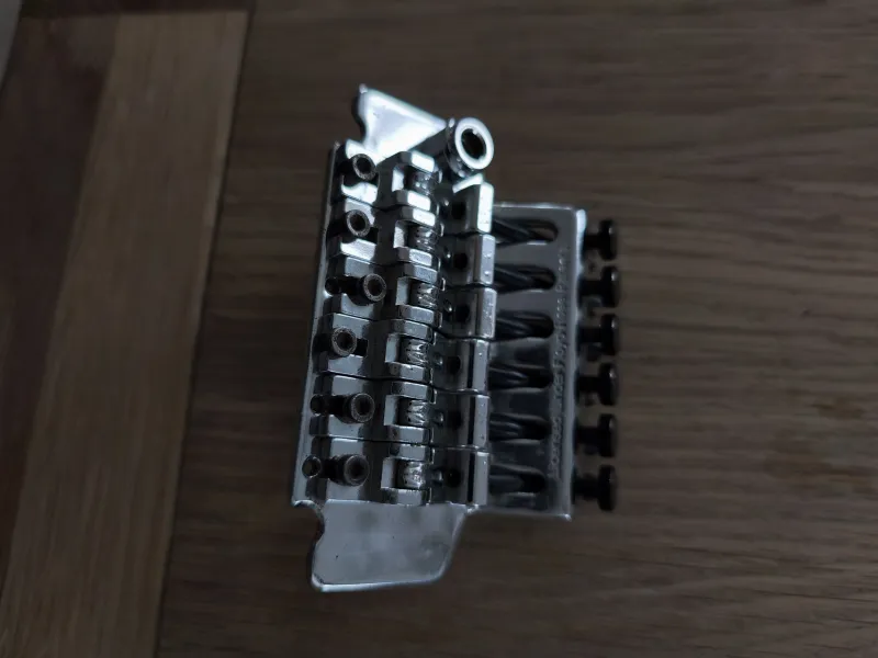 RG270-ből kiszerelt tremoló. Standard Floyd rose méretek. A tremoló mellé jár még a 3 rugó, a tőkecsavarok (ezt még nem szereltem.ki), és a rugó tartó lap is (nem tudom, mi a szakszó rá). Kar nincs megSzállítás