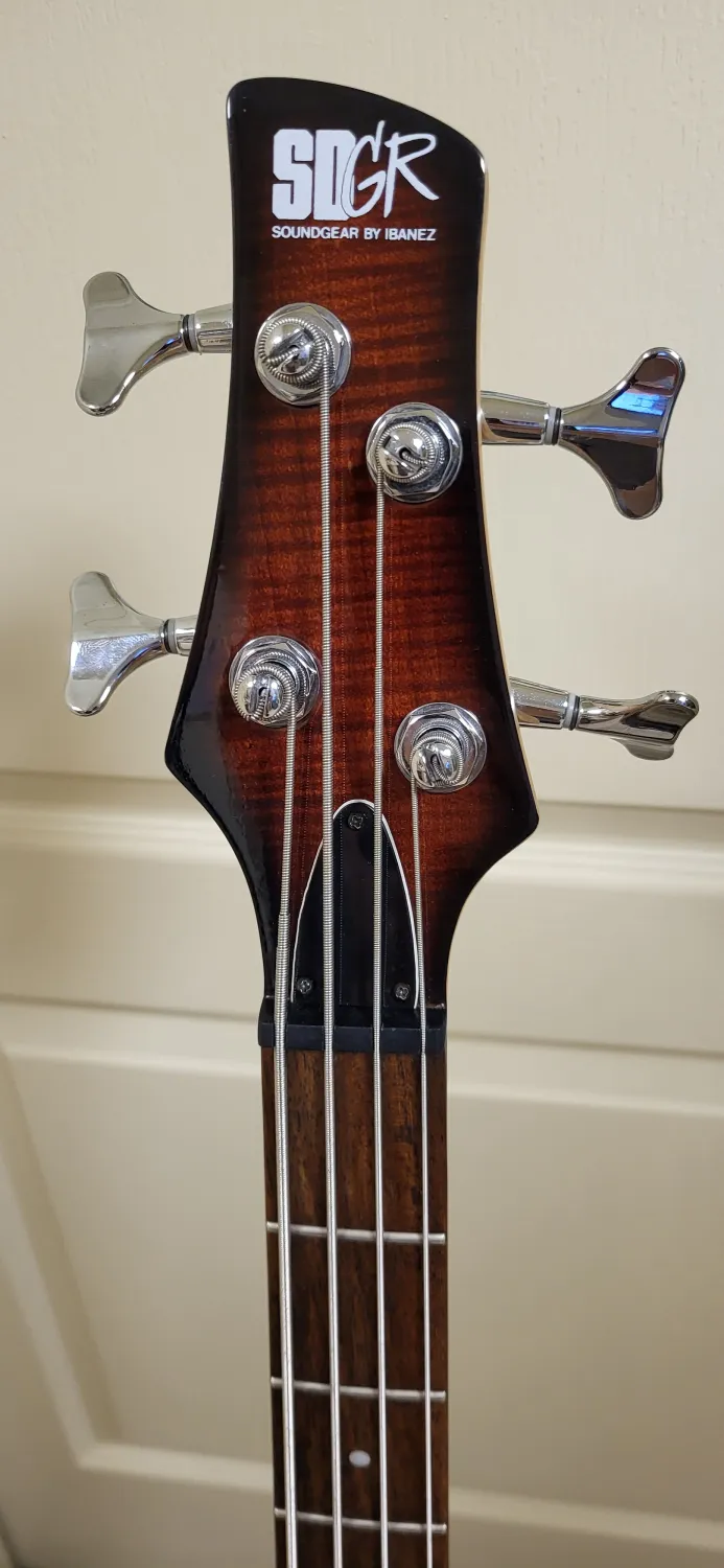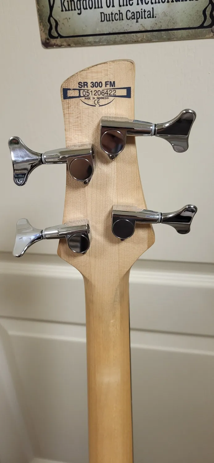 Ibanez SR300FM Violin Sunburst 2005 aktív basszusgitár eladó a képen látható állapotban.Test: Agathis, lángolt juhar fedlappal