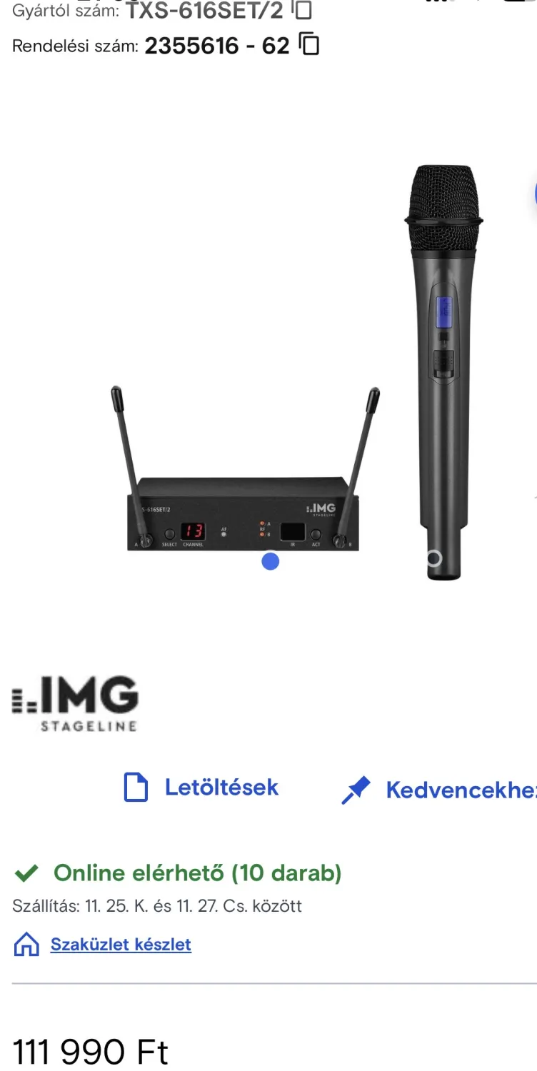 IMG TXS-616SET2 vezeték nélküli mikrofon