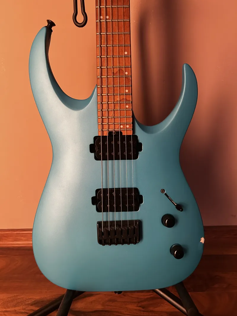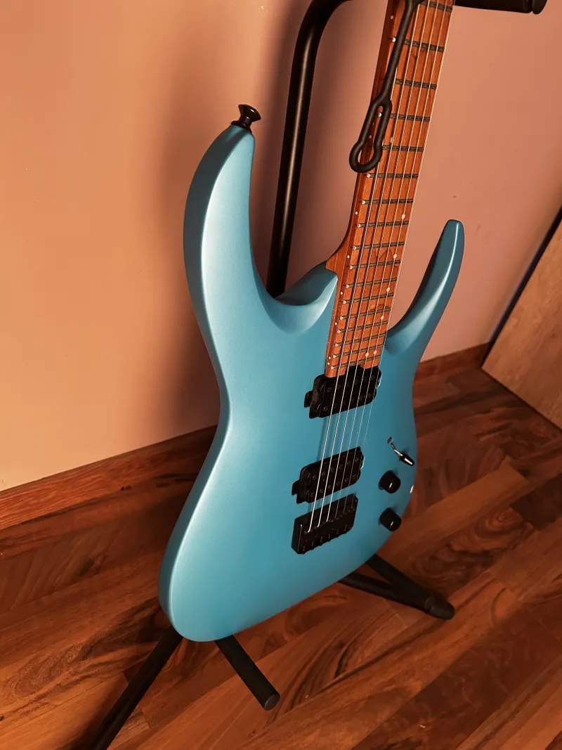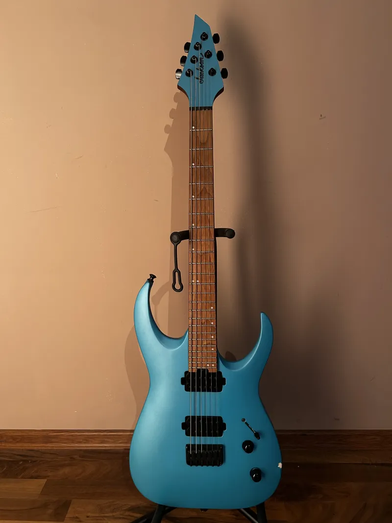 Eladó, alig használt Jackson MM Juggernaut HT6 matte blue frost színben.A gitáron szállításkor keletkezett sérülés, a festék rétegen (fotózva).