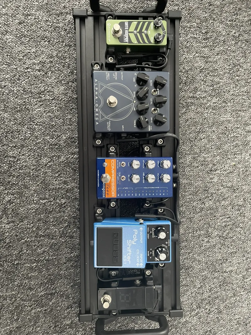 Eladó egy csak szobában használt Guitto GPB-01 Pedalboard. Velcro mentes pedál rögzítés. Négy pedál számára vannak hozzá gyárilag rögzítők. 5 pedál kényelmesen elfér rajta. Volt rajta 6 pedál is, 4 Normál és 2 Mini pedál, úgy már kellett vele logisztikázni, de ráfért! Hordtáskáját, velejáró szerszámokat és kiegészítőket adom vele!Szállítás