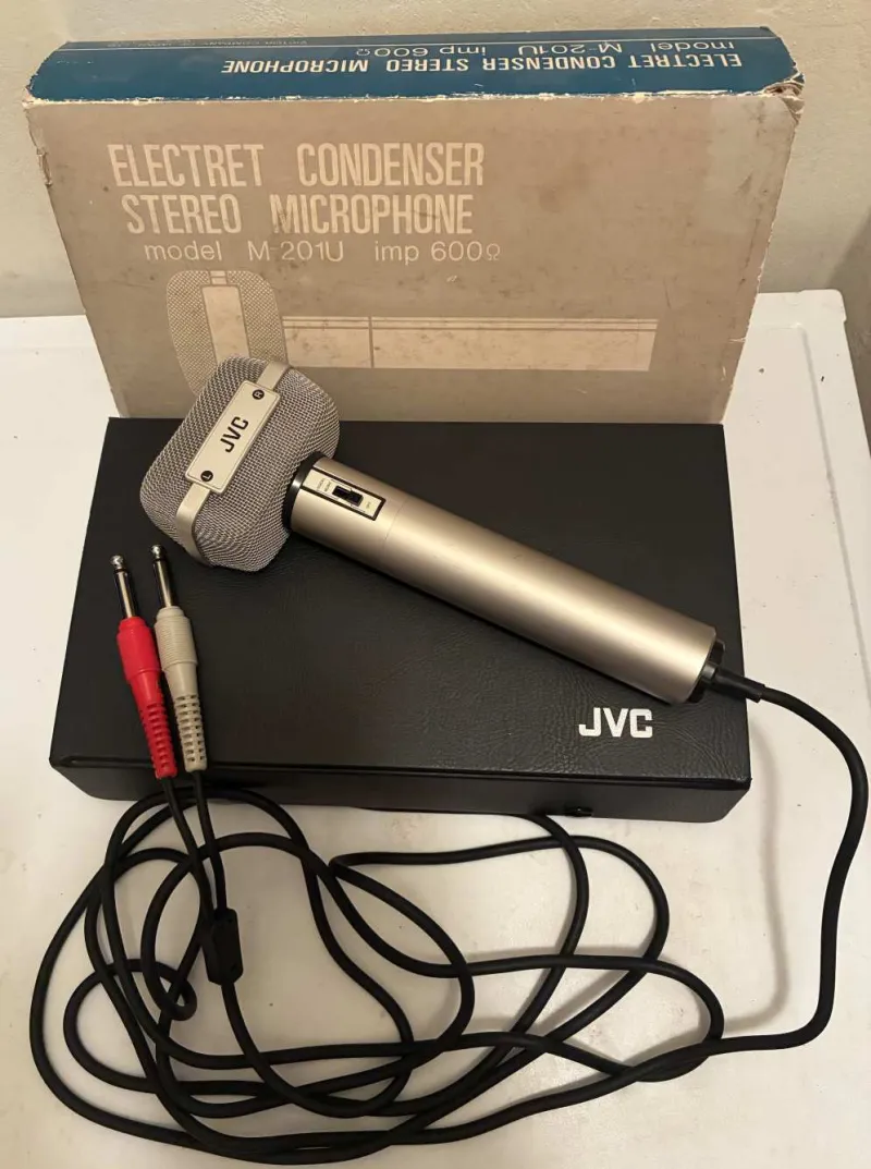 JVC M-201 sztereo mikrofon, japán gyártmány, gyári dobozában, hibátlanul működik.Vintage, nagyon menő külső.