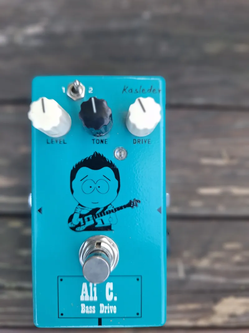 A Kasleder Ali C. Bass Overdrive/Distortion pedál nem vágja a mély frekvenciás tartományt, a basszusgitár tiszta hangjához tudjuk hozzákeverni a torzított hangot, így megtartva az eredeti karaktert. A kis kapcsoló segítségével két féle torzítási szövet között tudunk váltani, 1-es állásban egy közép dús overdrive hangot kapunk, 2-es állásban pedig egy nagyobb torzítású ˝V˝ eq jellegű torzítási szövetet.