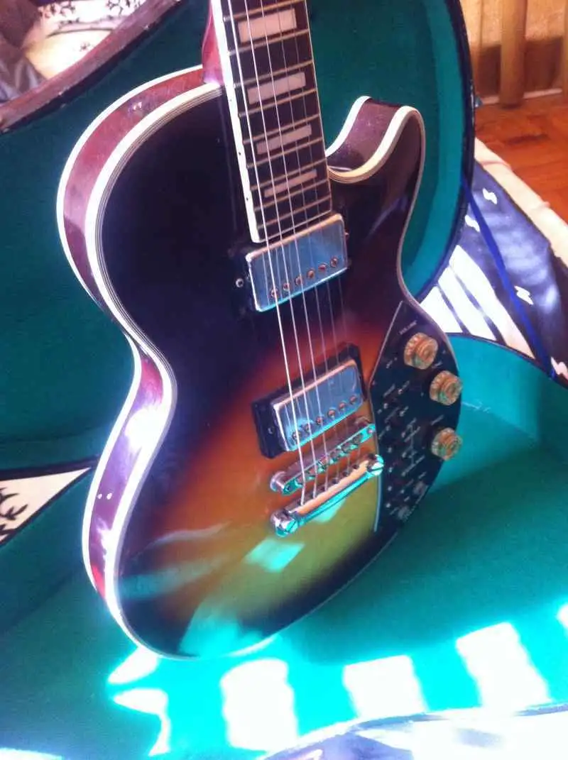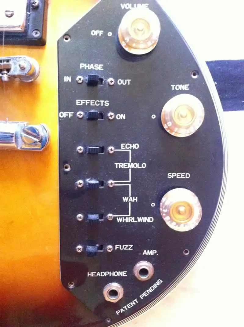 Az effektek nincsenek bekötve, csak a két hangszedő és a nyakán kicsit megrepedt. Ezért ilyen olcsó. Hozzáértőnek ajánlom, aki tudja értékelni. És foglalkozik vele