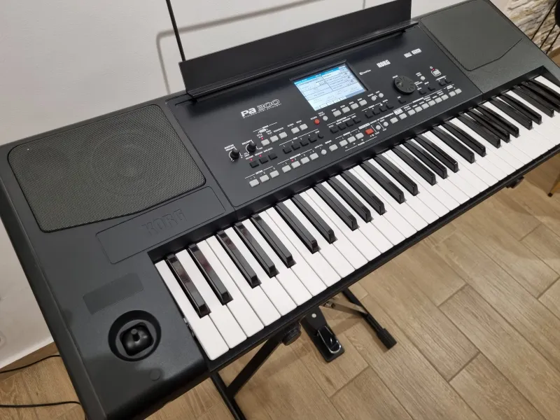 Korg pa300 szintetizátor, hozzátartozó szivacsos tokkal, pedállal, porvédővel, állvánnyal együtt eladó.61 billentyű, Velocity érzékeny, 128 hang, mint 950 gyári hangszín, 256 felhasználói hangszín, 128 Drum Kit