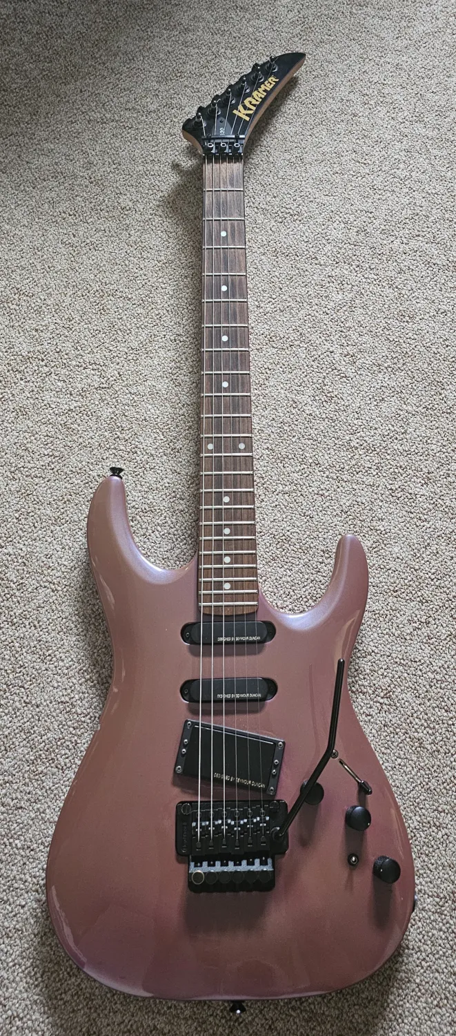 Eladó szép állapotú Kramer gitárom. Ha minden igaz akkor 89-es évjárat. Made in Korea.Ezt a szériát 91-ig gyártották. Egy pici sérülés van a test felső részén, fotóztam. Műazakilag tökéletes állapotú, a floyd rose is tökéletesen tartja a hangolást.