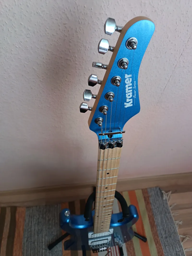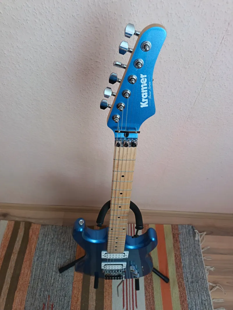 Eladóvá vált kihasználatlanság miatt a képeken látható Kramer gitárom. Hibátlan állapotban, új húrkészlettel rajta, tartozékaival, eredeti dobozában adom. Csere, köszi, nem.Szállítás