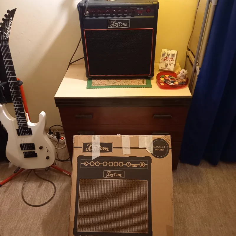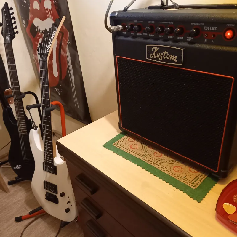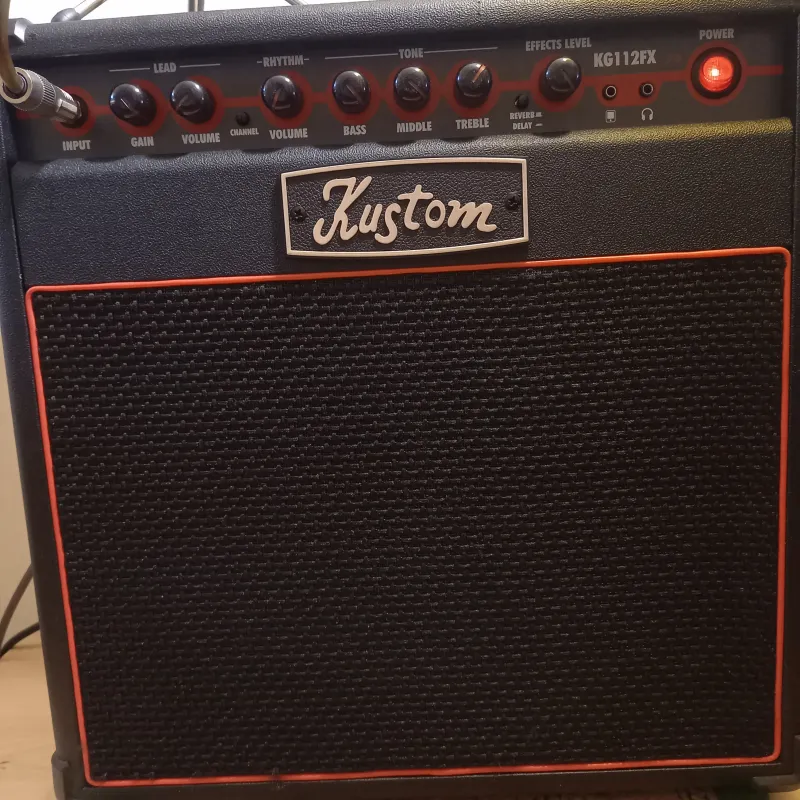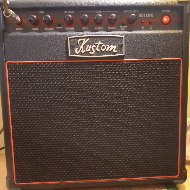 Szép állapotban lévő,multieffektes, minőségi elektromos gitár kombó ...12˝-es hangszoróval,gyönyörű hanggal újszerű állapotban ,gyári dobozával eladó,....Kustom KG112FX, tranzisztoros gitárkombó, teljesítmény: 20 Watt (RMS), Organic overdrive effekt, hangszóró: 1x 12 ˝ Kustom, 2 váltható csatorna (Rhythm és Lead), Bass, Middle és Treble állítási lehetőség, Lead csatorna: Volume, Gain, Rhythm csatorna Volume, Delay, Reverb effektek, MP3 / CD bemenet, fejhallgató kimenet, súly: 7,15 kgKapcsolódó hangszerteszt