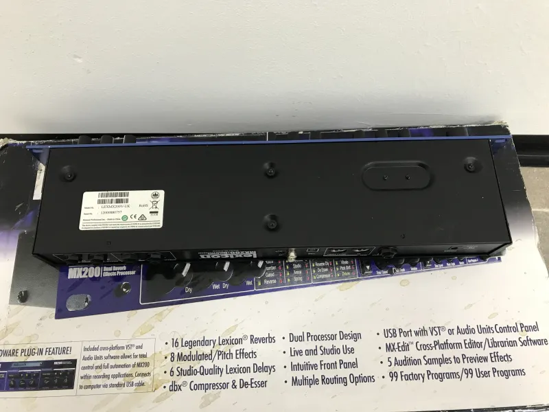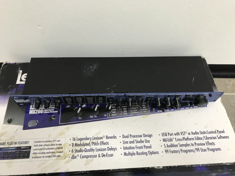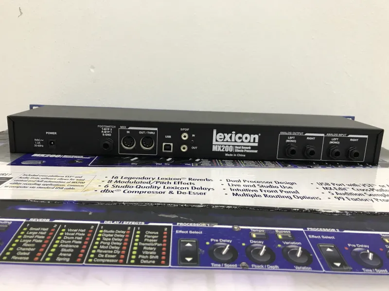 A Lexicon MX200 egy 1U magas, rackbe szerelhető, dupla processzoros effektegység, amely 32 legendás Lexicon reverb-pel, delay-lel és dbx dinamika effekttel rendelkezik, élő hangosításhoz és stúdióhasználathoz tervezve. Intuitív előlapi vezérlést, 99 gyári/99 felhasználói presetet és USB-csatlakoztathatóságot kínál, így ˝hardveres pluginként˝ is használható DAW-kkal.Kettős feldolgozás: Két effektet futtat egyszerre négy útvonalkonfigurációban (pl. kettős mono, kaszkád vagy sztereó párhuzamos).