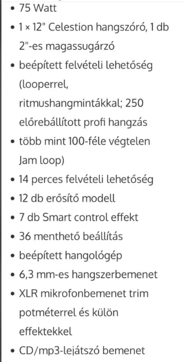 beépített felvételi lehetőség (looperrel, ritmushangmintákkal; 250 előrebállított profi hangzás
