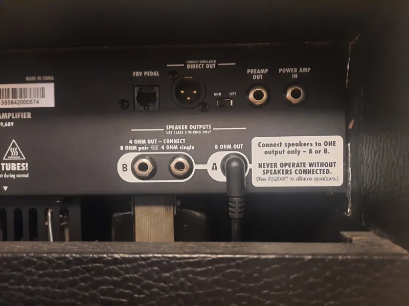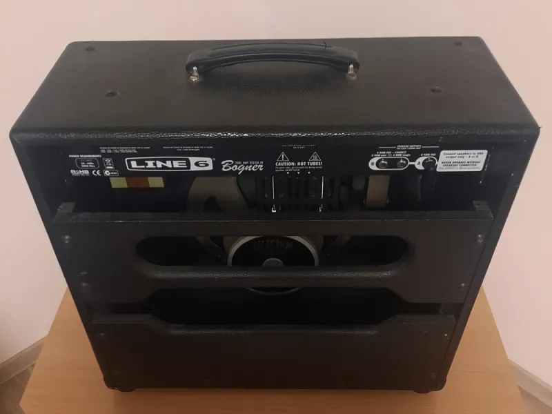 40 Wattos, 12-es Celestion Vintage 30 hangszóróval, a képeken látható ki- és bemenetekkel..