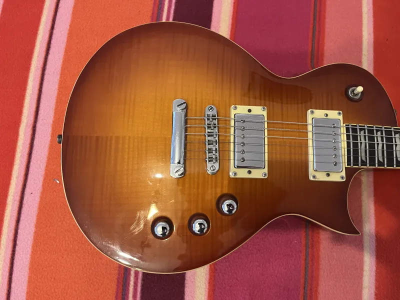 2007 es Koreai gyártás Seymour Duncan (JB-59)pick up ok Grover hangolókulcsok preciziós nyereg, koncert gitár tehát vannak rajt apróbb sérülések karcok. Beérett hangszer hatalmas sustain nagyon jó nyak igazi rock metál ( vagy bármire jó ) gitár . Straploock és egy Gator hibrid keménytok jár hozzá ! Húrt kell cserélni most d hangolásra van beállítva.