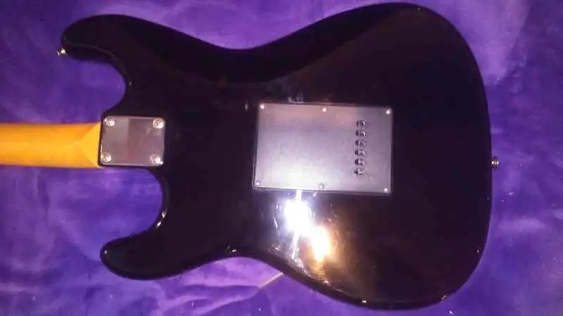 - Test… hát jó kérdés XD, mivel feketére fel van festve így nem lehet tudni de én égerre tippelek, jó súlyban van, úgy szól kb mint egy éger testű strat!