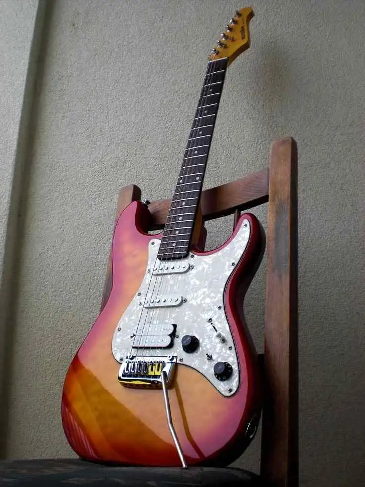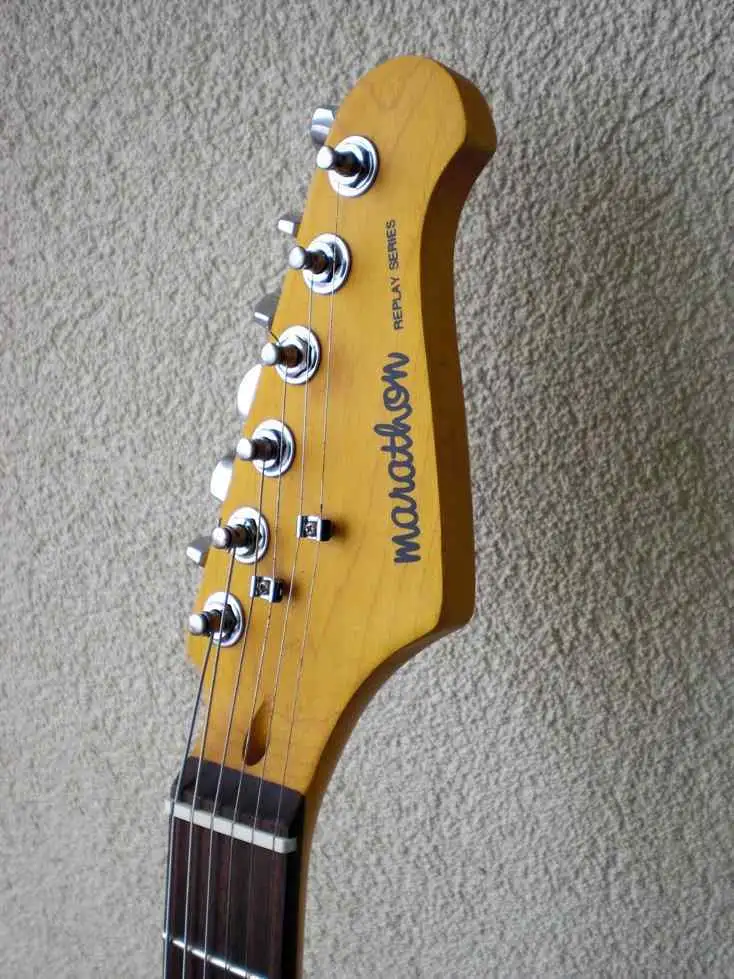 huendeskesEladó egy újszerű Marathon Replay szériás stratocaster. A hangszert 8-10 éve gyártották az internetes források alapján Koreában. A test tömör jól rezonáló keményfából készült, a lakkozása illetve kidolgozása mind igényes,csak minimális, használatból eredő hajszállkalrcok,apró benyomódások vehetőek észre - közelről. A nyak egy fából kifaragott jávor, rózsafa fogólappal.Nyílegyenes a korából adódóan már nem is fog vetemedni; a hagyományos c profilú strat nyaknál laposabb,bundok szintén újszerű állapotúak.Az elektronika hibátlan, hozza a jellegzetes stratocaster-hangot,a hátsó humbucker- mini kapcsolóval felezhető- keményebb hangzást is lehetővé tesz.Gyenge pontjaként az árkategóriájára sajnos jellemző gyengébb kulcsokat tudnám megemlíteni,ami főleg erős tremoló használatnál okozhat elhangolódást(ennek cseréjével kihasználható lenne az egyébként masszív, 2 pontos tremoló is ),de normál játéknál rendesen teszi a dolgát. Összességében egy kényelmes, korrekt és jó ár-érték arányú hangszer.
