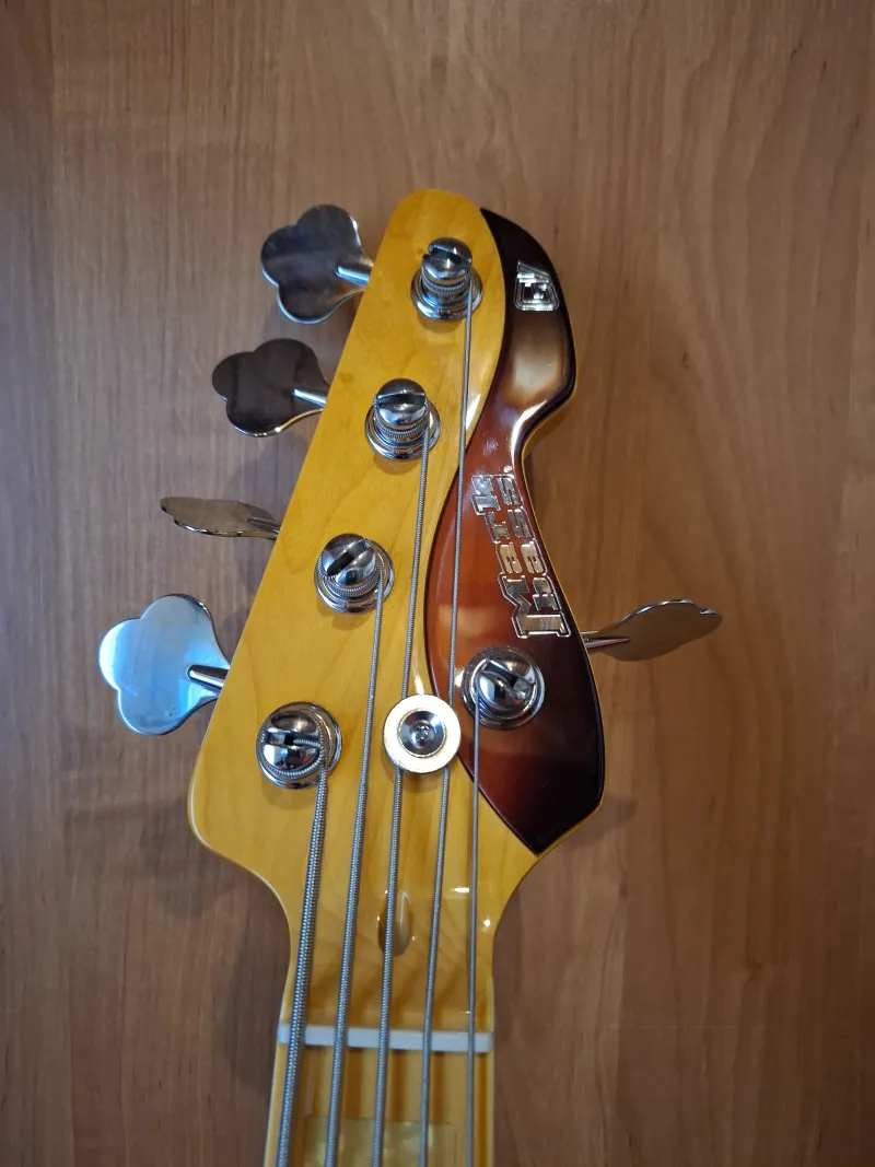 Kihasználatlanság miatt eladásra kínálom ezt az elegáns megjelenésű, gyönyörű hangú, sunburst színű, passzív, 5 húros basszusgitárt, új húrokkal, idén júniusban hangszerész által beállítva.