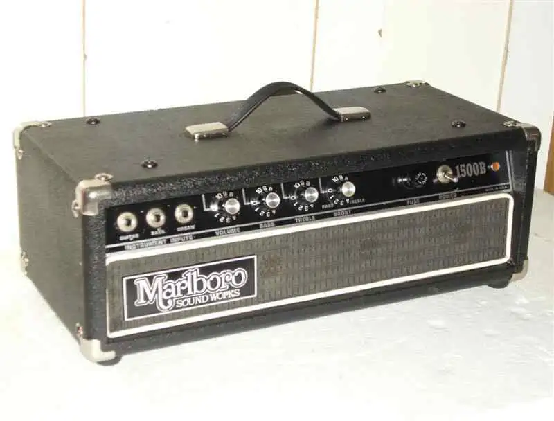 Eladó a képen látható MARLBORO 1500-B 8 Ohm 100W-os gitár, basszusgitár, szinti, erősítő fej hibátlan újszerű állapotban. 3 bemenet, Volume, treble ,bass, + booster /mély vagy magas/ kiemelés poti. Line kimenet.
