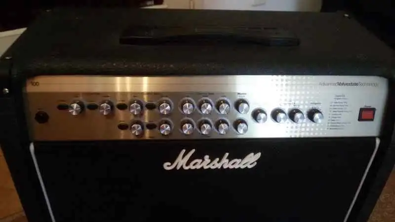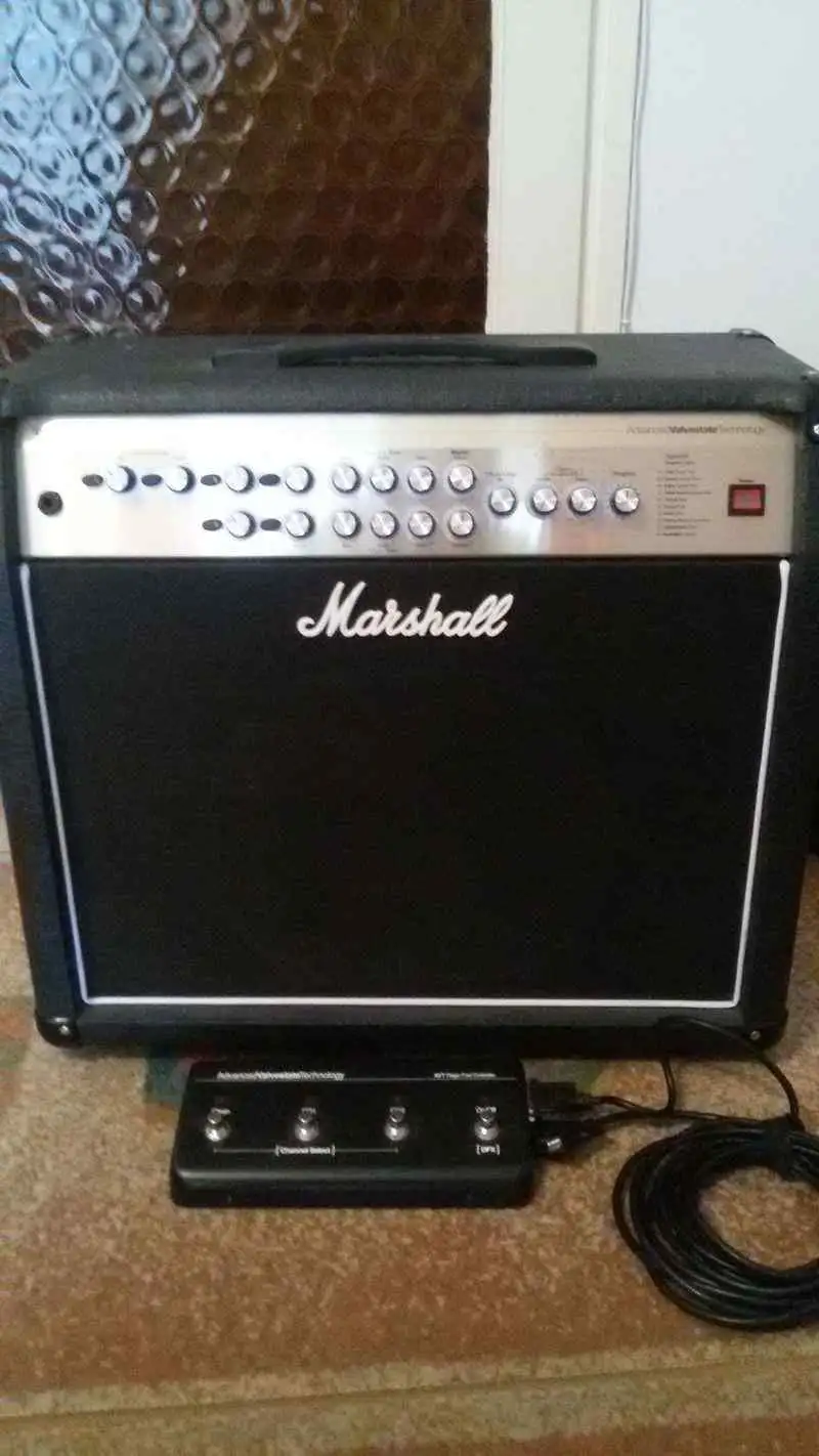 Eladó Marshall AVT100X előfokcsöves gitárkombó! Made in England! 100W. 3 csatorna (Clean, OD1, OD2), beépített gyári effektek (Chorus, Reverb, Flange, Delay), gyári lábkapcsoló. Újszerű állapotban. Van hozzá egy vastag védőhuzat és egy Marshall tartalék cső. Komoly hangja van, színpadképes erősítő! Már egy ideje csak letakarva pihen! Csere nem igazán érdekel! Szegeden kipróbálható!