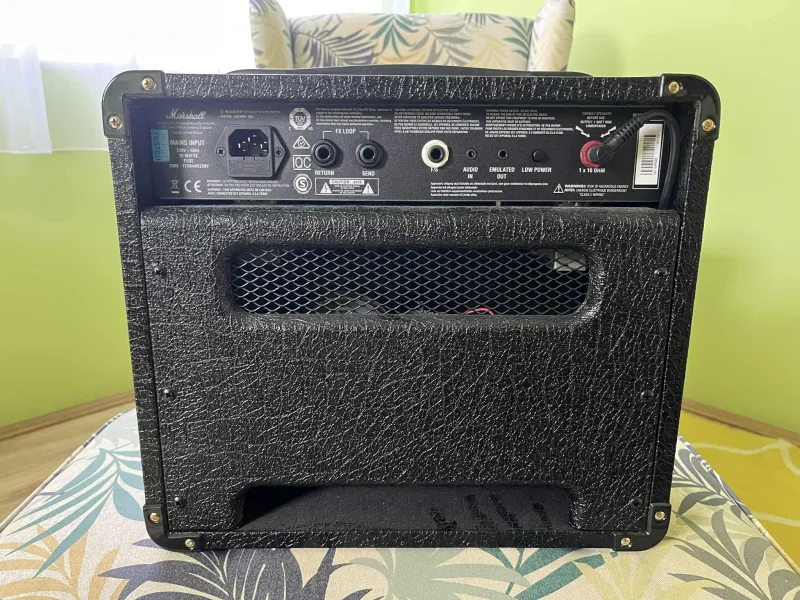 Kihasználatlanság miatt eladóvá vált szobalakó csöves gitárkombóm, egy Marshall DSL1CR. Az 1 watt ellenére kifejezetten hangos tud lenni, és az igazi marshallos classic gain és high gain soundokat nagyon szépen hozza. A hátul lévő kapcsolóval 0,1 wattra csökkenthető a teljesítmény, itthoni gyakorláshoz nekem ez vált be. Adom hozzá a lábkapcsolót, tápkábelt és az eredeti dobozát is.